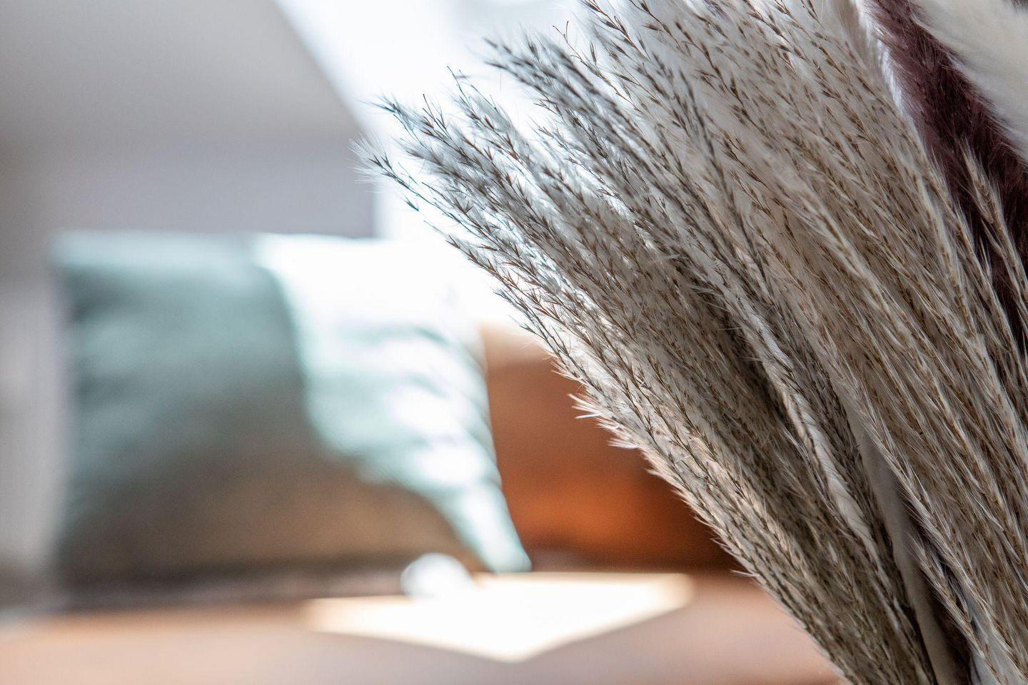 Ein modernes Tageslichtbad bietet eine große komfortable Dusche mit niedrigem Einstieg sowie eine Handtuchheizung. Das Herzstück der Wohnung ist das gemütliche Wohnzimmer mit einer hochwertigen, offenen Küche. Die großzügige Küche ist ausgestattet mit einer Spülmaschine, ein Cerankochfeld, eine Filterkaffeemaschine und einen Kühlschrank, der mit einem Gefrierfach versehen ist. Neben der Küche bietet eine kleine Leseecke Platz zur Entspannung. Eine kuschelige Couchgarnitur, ein großer TV-Flatscreen und ein Essbereich vervollständigen den Wohn-und Küchenbereich. Von hier gelangen Sie auf den sonnigen Südbalkon, ausgestattet mit hochwertigen Balkonmöbeln. Hier können Sie bei einem Glas Wein entspannte Abende mit Ihren Liebsten genießen.