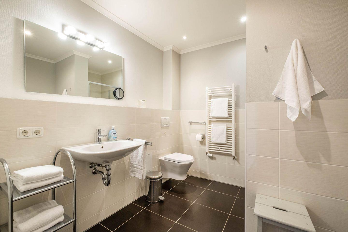 Sanitär: Duschbad, Handtuchtrockner, Föhn