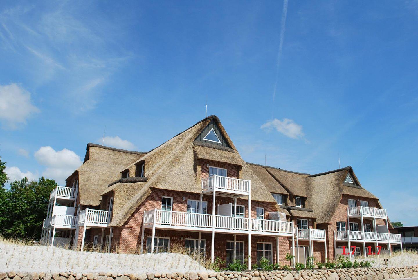 Das Appartement 1.7 befindet sich im Erdgeschoss mit Terrasse. Im Wohnraum finden Sie gemütliche Doppel-Relax-Sessel mit Leselampe. Die Küche und der Essbereich sind im Wohnbereich integriert. Das Schlafzimmer ist mit einem Swiss-Sense-Boxspringdoppelbett mit Komforthöhe und TV Wandmontage ausgestattet. Das Bad verfügt über eine barrierefreie Dusche/WC und Sauna mit Farblichtanlage. Ein Abstellraum befindet sich im Appartement. Fußbodenheizung befindet sich im ganzen Appartement. Auf die Terrasse gelangen Sie vom Wohnraum und Schlafzimmer, die in Südlage liegt. Das Appartement verfügt über eine Gegensprechanlage mit Kamera. Im Keller finden Sie Waschmaschine und Trockner (gebührenpflichtig), Abstellraum für Fahrräder und einen gemeinschaftlichen Fitnessraum. Aufzug im Haus. Am Haus finden Sie einen weiteren abschließbaren Fahrradabstellraum und einen kleinen Spielplatz für unsere kleinen Gäste.