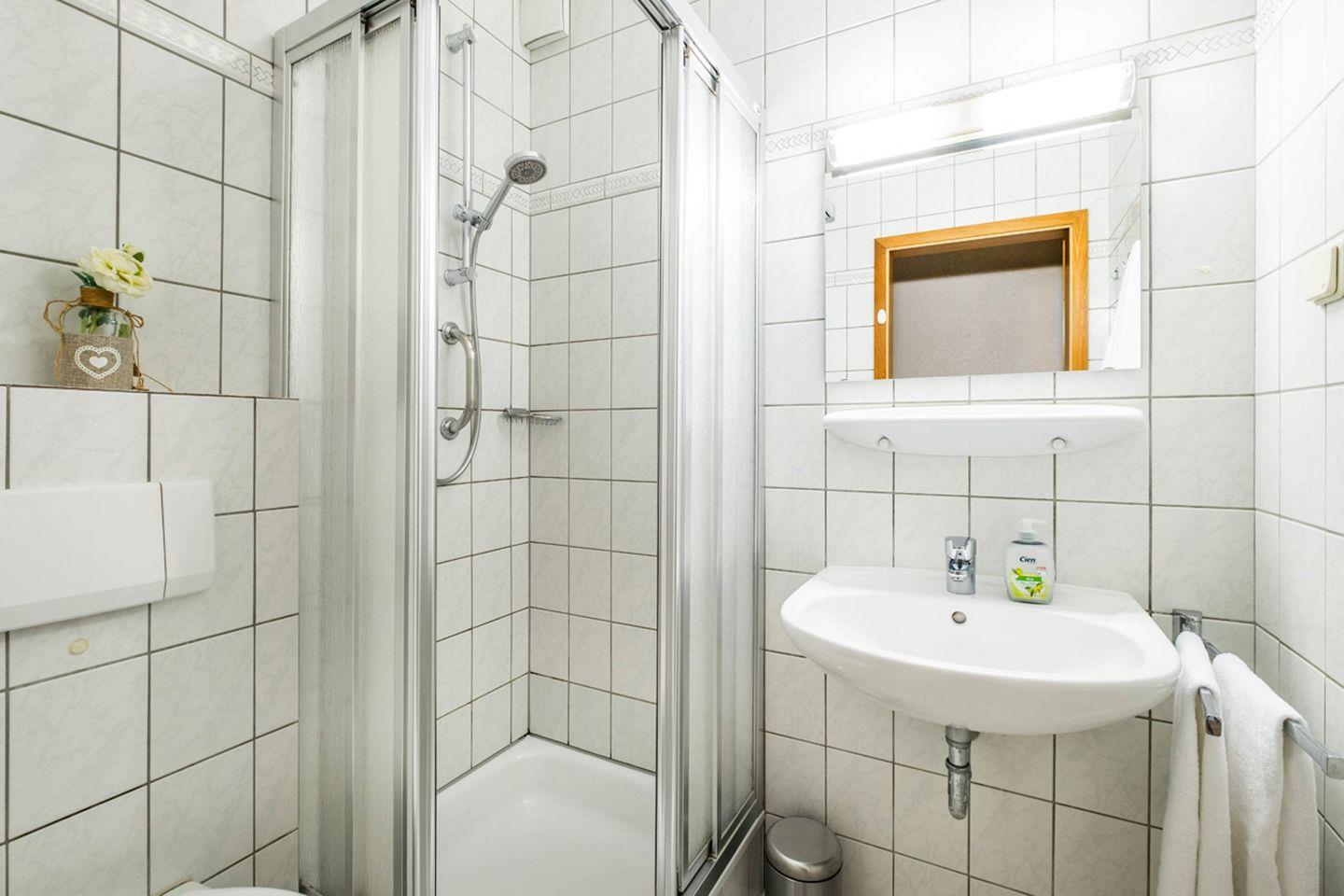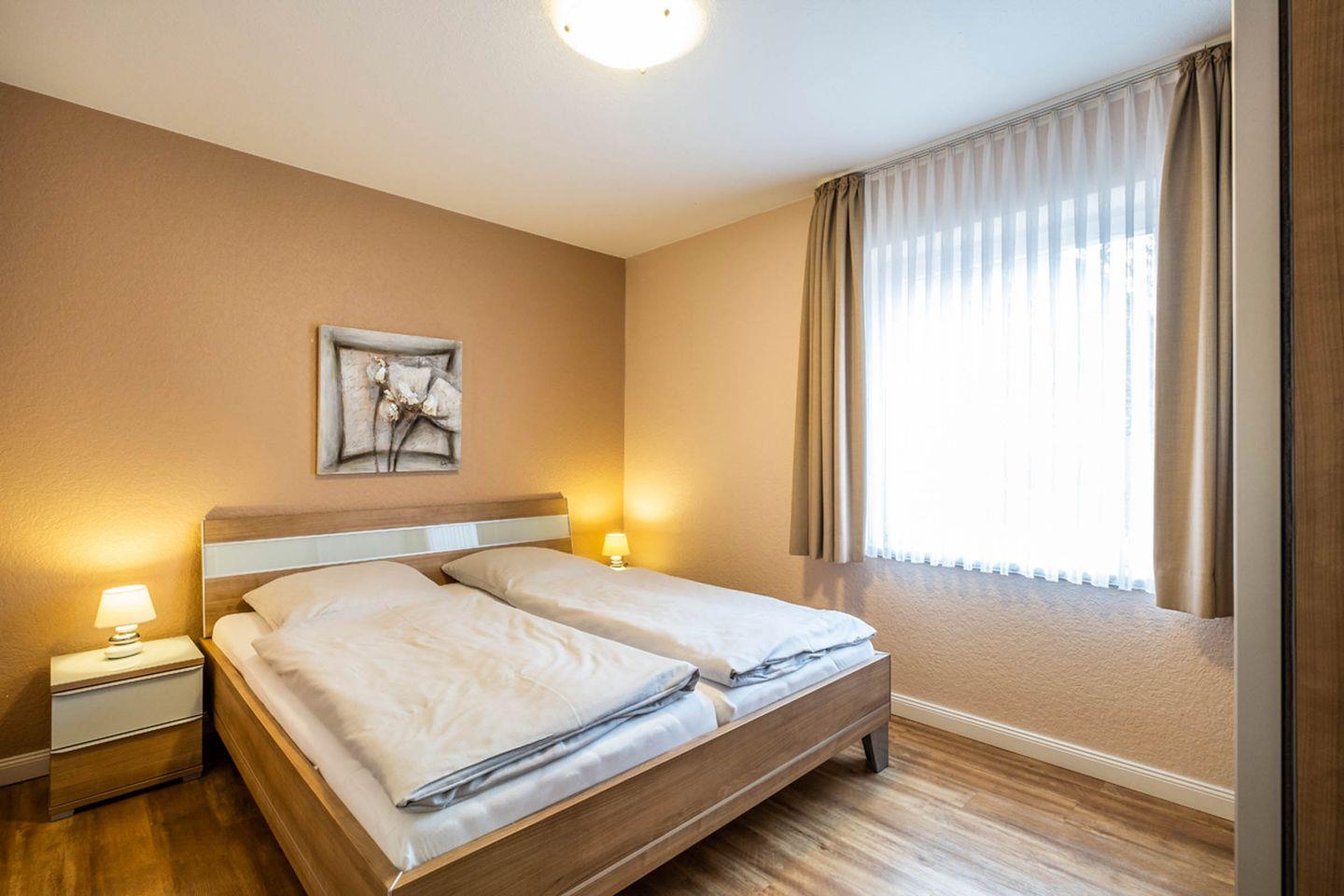 Das Bad verfügt über eine Dusche/WC. Vom Wohnbereich gelangen Sie auf die Terrasse. Das eine Schlafzimmer verfügt über ein Doppelbett und das zweite Schlafzimmer über 2 Einzelbetten. Der Wohnung ist ein PKW - Stellplatz direkt am Haus zugehörig.