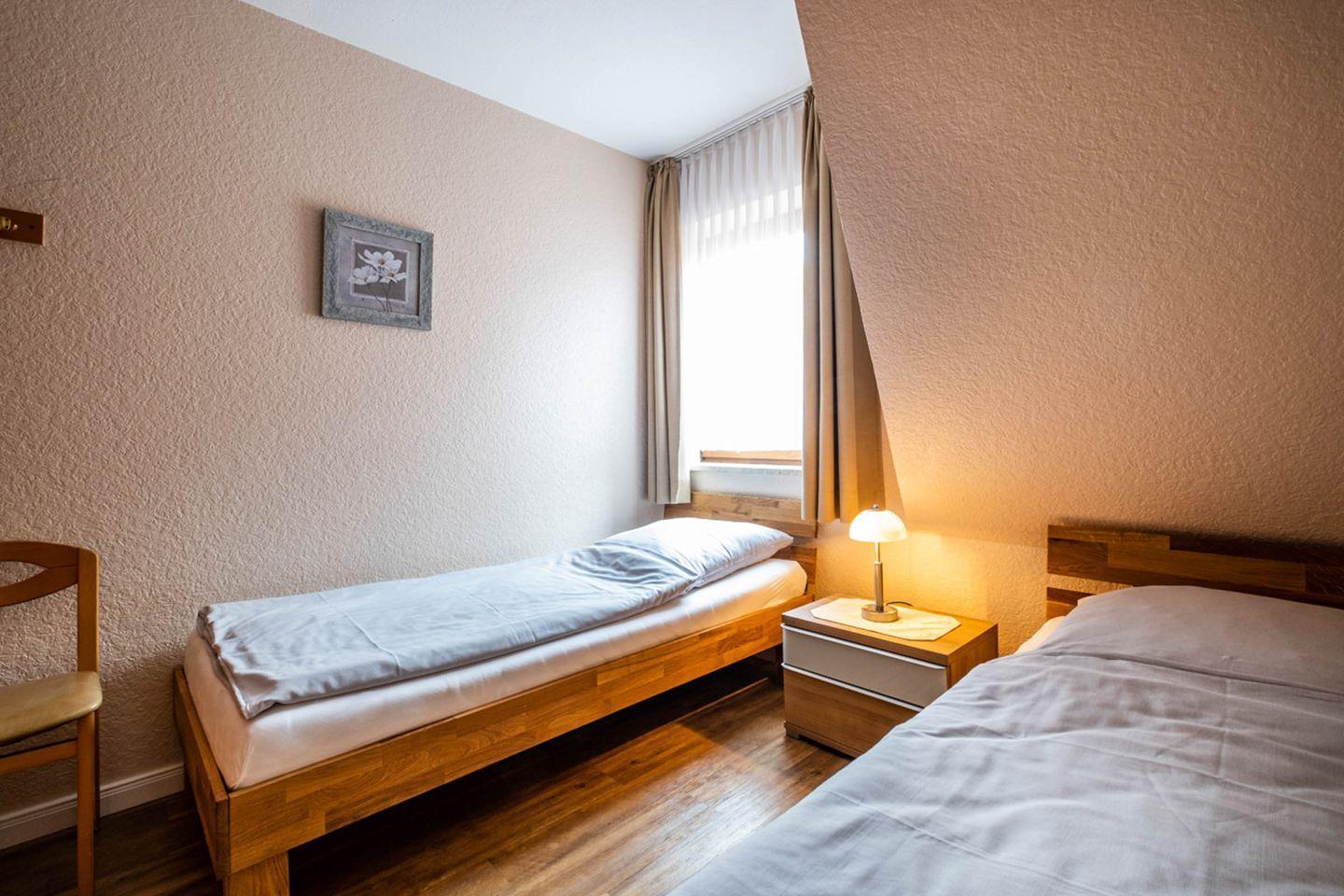 Das Bad verfügt über eine Dusche/WC. Vom Wohnbereich gelangen Sie auf den Balkon. Das eine Schlafzimmer verfügt über ein Doppelbett und das zweite Schlafzimmer über 2 Einzelbetten. Der Wohnung ist ein PKW - Stellplatz direkt am Haus zugehörig. Einen offenen Fahrradunterstand halten wir für Sie bereit.