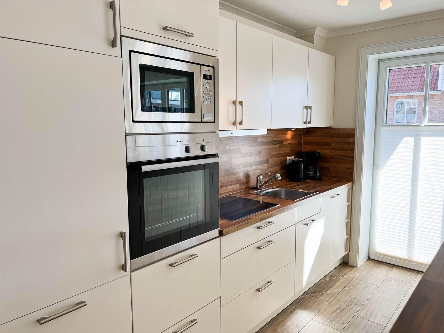 Das Appartement 2.6 befindet sich im I.OG mit Balkon. Im Wohnraum finden Sie eine gemütliche Couchgarnitur. Die Küche und der Essbereich sind im Wohnbereich integriert. Ein Schlafzimmer ist mit einem Boxspringbett in Komforthöhe und TV ausgestattet. Das zweite Schlafzimmer ist mit zwei zusammenstehenden Einzelbetten mit Komforthöhe und mit einem TV ausgestattet. Das Bad verfügt über eine barrierefreie Dusche/WC und Bidet. Das Appartement verfügt zusätzlich über ein Gäste- WC. Fußbodenheizung befindet sich im ganzen Appartement. Die beiden Balkone erreichen Sie vom Wohnraum . Das Appartement verfügt über eine Gegensprechanlage mit Kamera. Im Keller finden Sie Waschmaschine und Trockner (gebührenpflichtig), Abstellraum für Fahrräder und einen gemeinschaftlichen Fitnessraum. Aufzug im Haus. Am Haus finden Sie einen weiteren abschließbaren Fahrradabstellraum und einen kleinen Spielplatz für unsere kleinen Gäste.