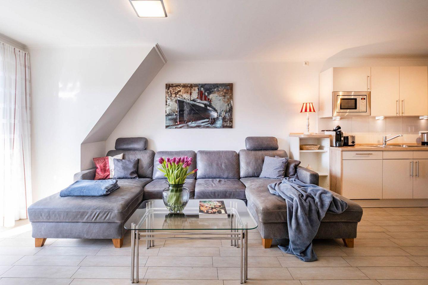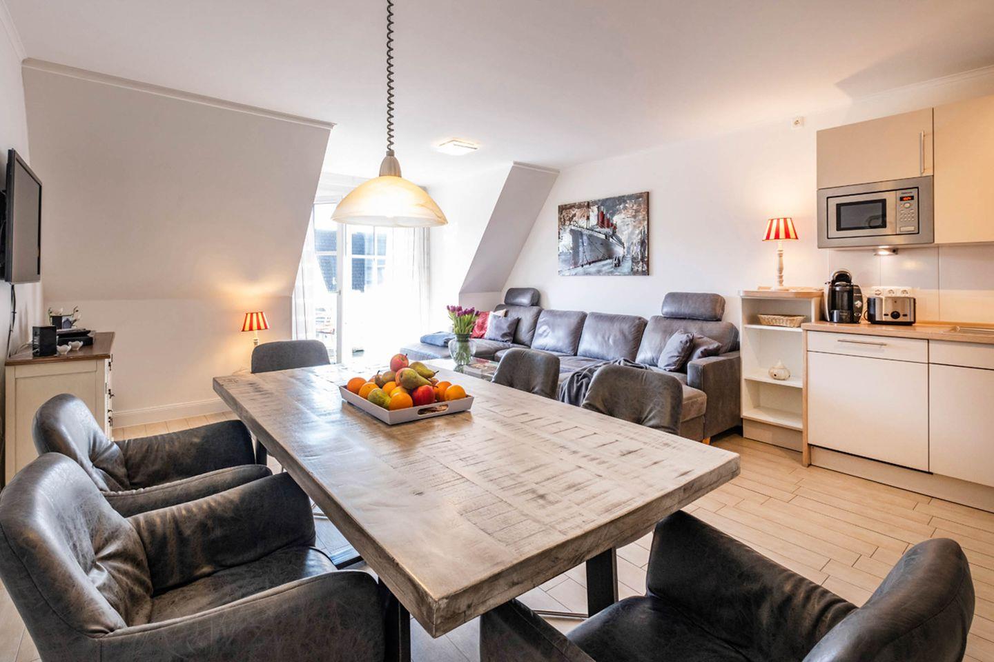 Das Büsumer Reethus Apartment 2.8 bietet auf 80 m² modernen Komfort für bis zu vier Gäste. Die Unterkunft verfügt über einen Balkon, eine offene Küche, zwei Schlafzimmer und ein Badezimmer. Sauna, Fitnessraum, WLAN sowie ein Privatparkplatz stehen zur Verfügung. Der Strand, Einkaufsmöglichkeiten und Restaurants sind nur 250 Meter entfernt. Ideal für Familien und Erholungssuchende.