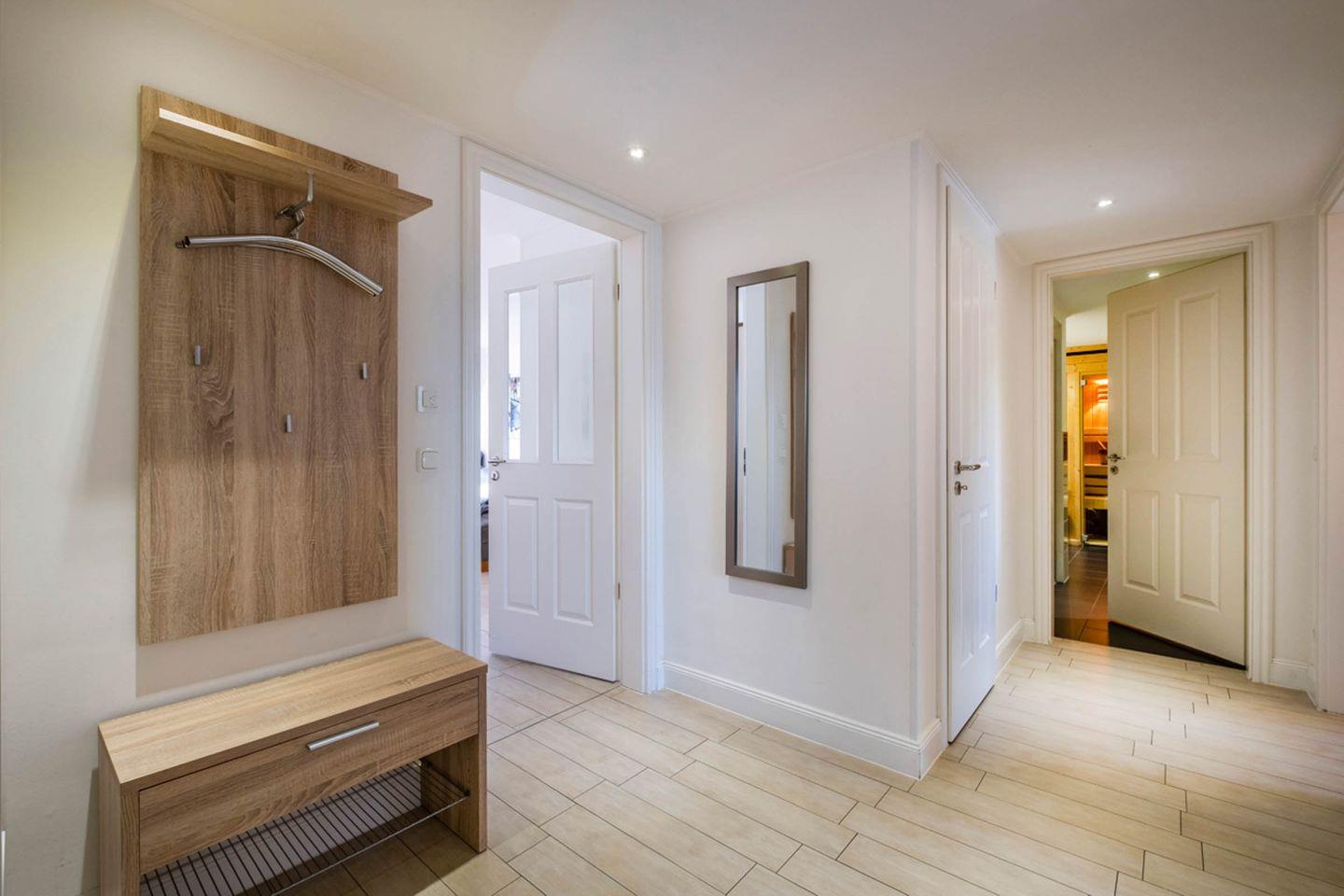 Das Appartement 2.8 befindet sich im I.OG mit Balkon. Im Wohnraum finden Sie eine gemütliche Couchgarnitur und einen Sessel. Die Küche und der Essbereich sind im Wohnbereich integriert. In einem der Schlafzimmer steht ein Doppelbett in Komforthöhe , in dem anderen Schlafzimmer steht ein Einzelbett mit ausziehbarer zusätzlicher Liegefläche (nicht auf gleicher Höhe, siehe Bilder). Beide Schlafzimmer sind mit je einem TV ausgestattet. Das Bad verfügt über eine barrierefreie Dusche/WC und Sauna. Fußbodenheizung befindet sich im ganzen Appartement. Den Balkon erreichen Sie vom Wohnraum. Das Appartement verfügt über eine Gegensprechanlage mit Kamera. Im Keller finden Sie Waschmaschine und Trockner (gebührenpflichtig), Abstellraum für Fahrräder und einen gemeinschaftlichen Fitnessraum. Aufzug im Haus. Am Haus finden Sie einen weiteren abschließbaren Fahrradabstellraum und einen kleinen Spielplatz für unsere kleinen Gäste.