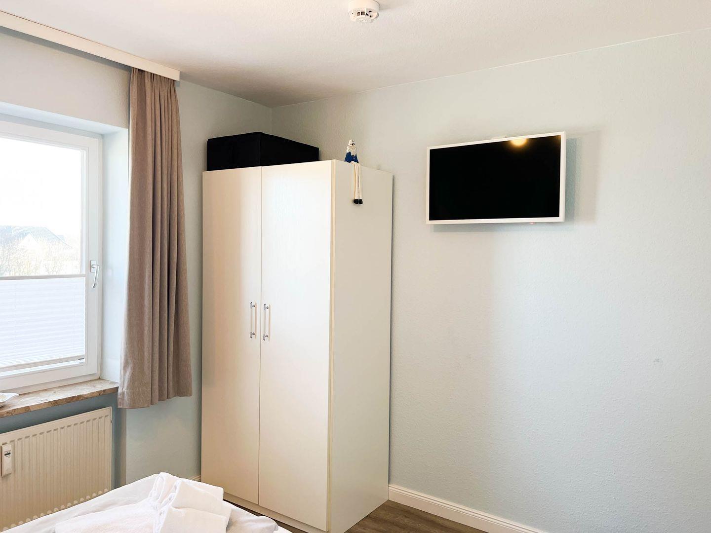 Die Ferienwohnung Nr. 22 im Haus Nordseeblick befindet sich im zweiten Obergeschoss und verfügt über einen Balkon. Im Wohnzimmer finden Sie eine Couchgarnitur mit einem Sessel vor. Die Küche und der Essbereich sind im Wohnbereich integriert. Das Schlafzimmer ist mit einem Doppelbett und einem Fernseher ausgestattet. Das Bad verfügt über eine Dusche/WC. Vom Wohnraum aus gelangt man auf den in Südwestlage liegenden Balkon. Im Keller befinden sich eine Waschmaschine und Trockner (gebührenpflichtig) sowie ein Abstellraum für Fahrräder. Fährräder können auch vor dem Haus im Fahrradständer abgestellt werden. Das Haus verfügt über einen Aufzug.