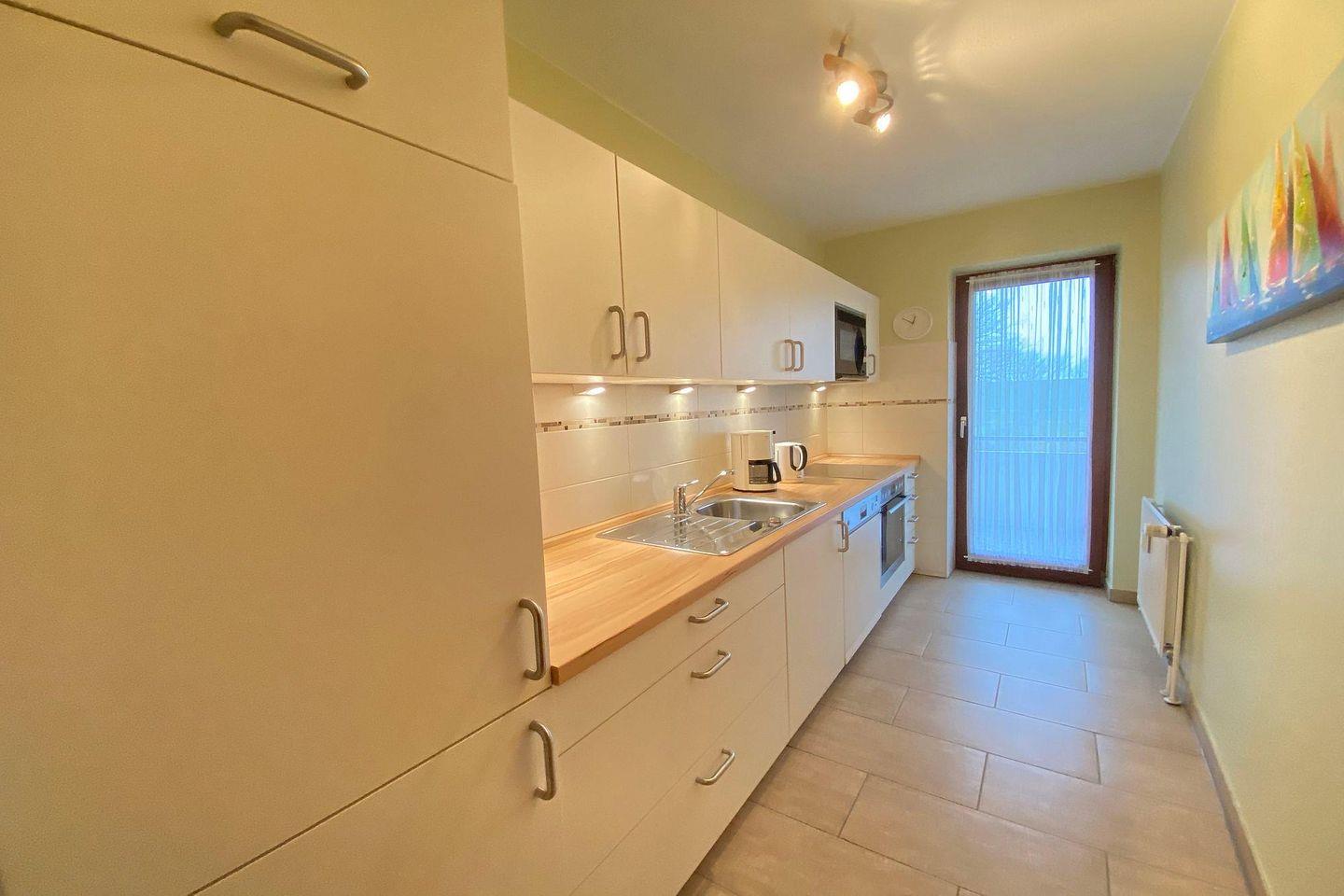 Die Ferienwohnung Nr. 16 im Haus Nordseeblick befindet sich im ersten Obergeschoss und verfügt über einen Balkon. Im Wohnzimmer finden Sie ein gemütliches Ecksofa mit einem Sessel und einem Extra Fernseh-Sessel mit Hocker. Der Essbereich ist im Wohnzimmer integriert. Die Küche ist komplett separat und lässt keine Wünsche offen.