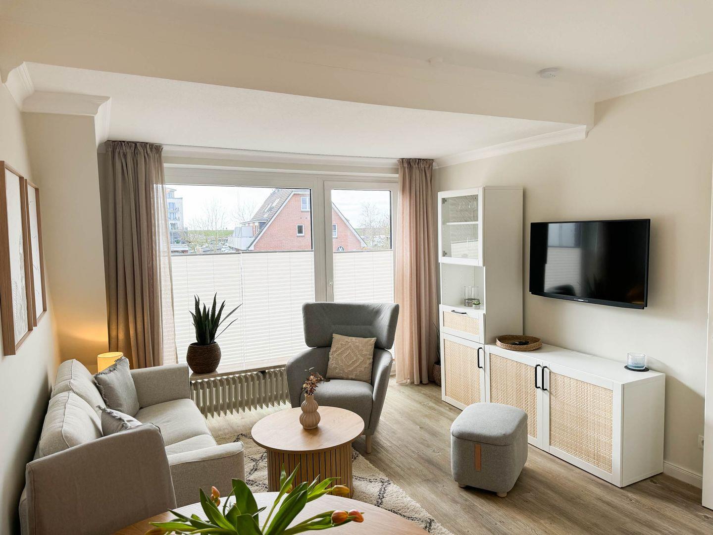 Haus Hoch am Wind Wohnung 5 in Büsum bietet auf 33 m² eine moderne Ausstattung mit offenem Wohn- und Essbereich, separatem Schlafzimmer, bodengleicher Dusche, Balkon sowie kostenfreiem WLAN. Die Ferienwohnung verfügt über eine voll ausgestattete Küche mit Spülmaschine und einen eigenen Parkplatz. Strand, Einkaufsmöglichkeiten und Restaurants sind nur 250 Meter entfernt.