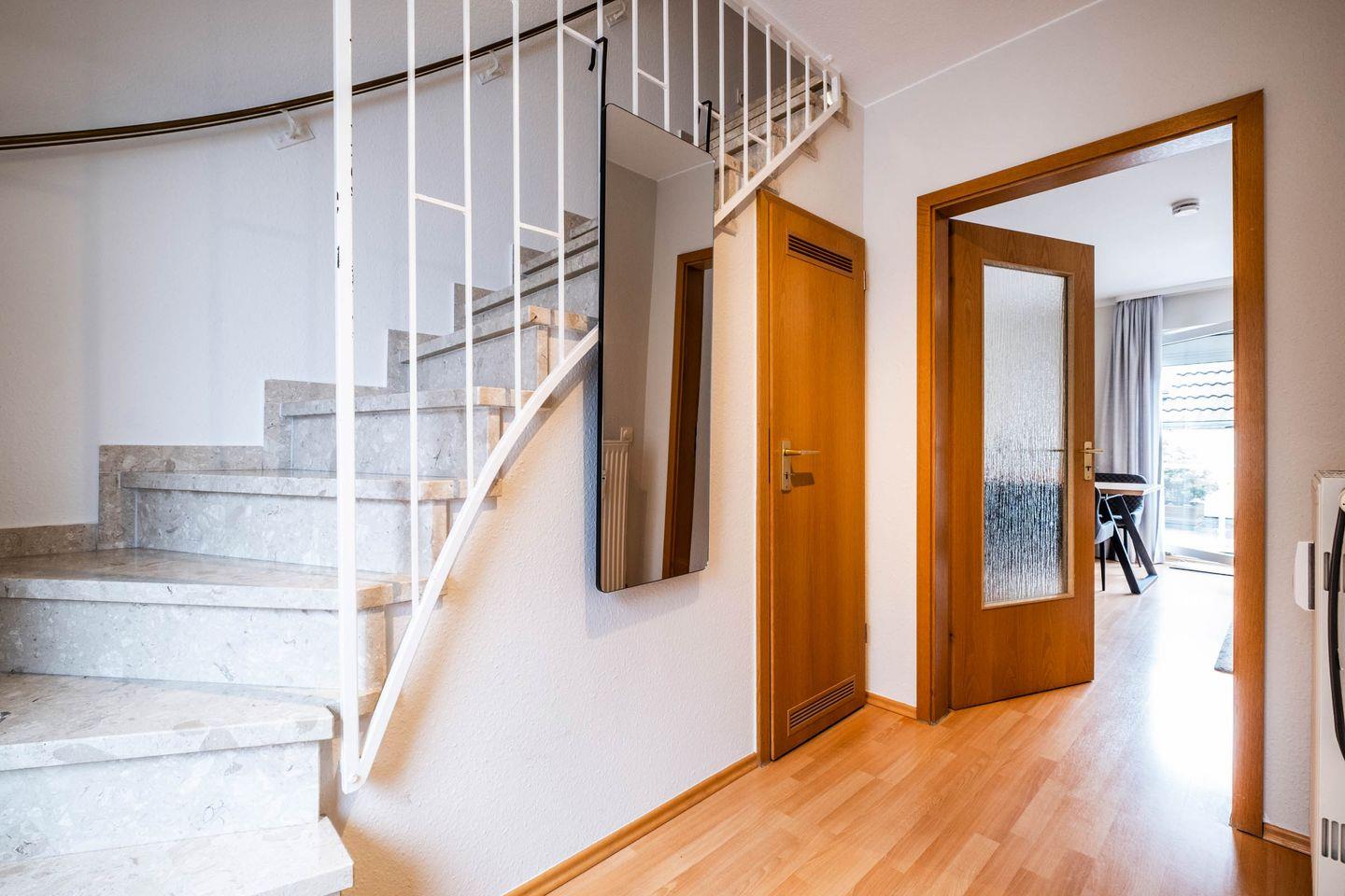 Im oberen Teil der Wohnung (durch eine Treppe zu erreichen), befinden sich die beiden Schlafzimmer sowie ein Gäste-WC.