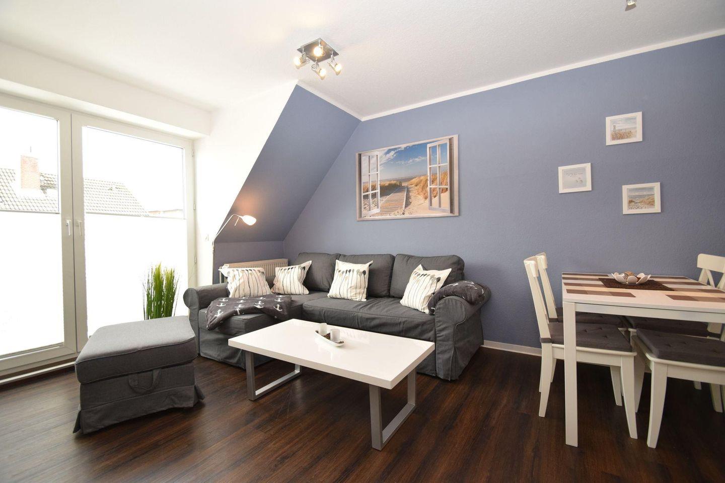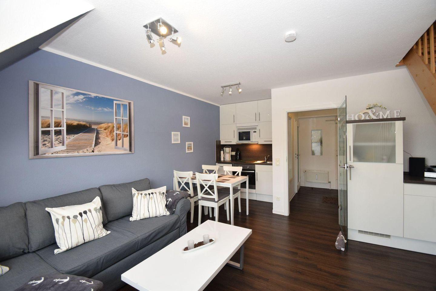 Die modern ausgestattete Wohnung Haus Seemeile 3.10 in Büsum überzeugt im 3. Stock (über 2 Etagen) mit offener Küche, Wohnzimmer und Balkon. Sie bietet ein separates Schlafzimmer, ein Badezimmer mit Dusche und Gäste-WC sowie WLAN, zwei TVs und Spülmaschine.