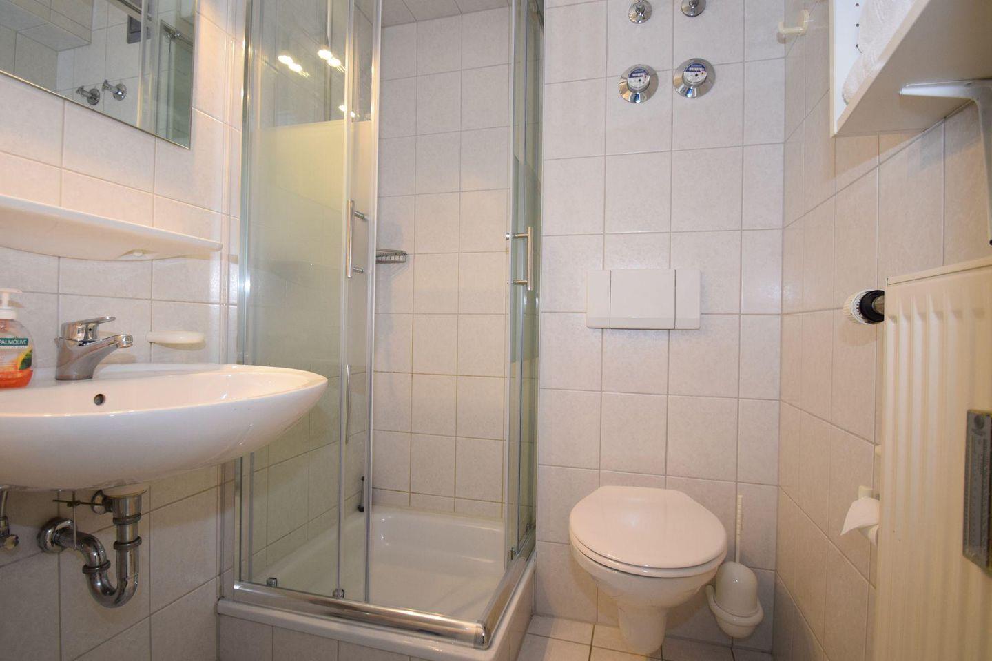 Das Bad verfügt über eine Dusche/WC. Vom Wohnbereich gelangen Sie auf den Balkon.