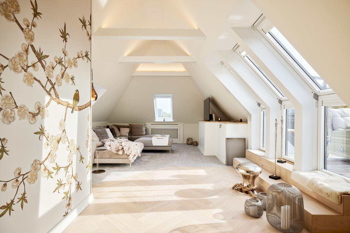 Zwei behagliche Schlafzimmer mit Boxspringbetten sind als echte Rückzugsorte gedacht; das Master verfügt über Ankleidezimmer und Bad en suite. Im Wohnbereich lädt das großzügige Sofa von Walter Knoll zu langen Gesprächen und leiser Musik ein, getragen von einem stimmungsvollen Lichtkonzept. Die Designbäder setzen mit bodengleichen Duschen, großformatigen Spiegeln mit integrierten TVs und Pflegeprodukten von Thalgo die luxuriöse Linie fort.