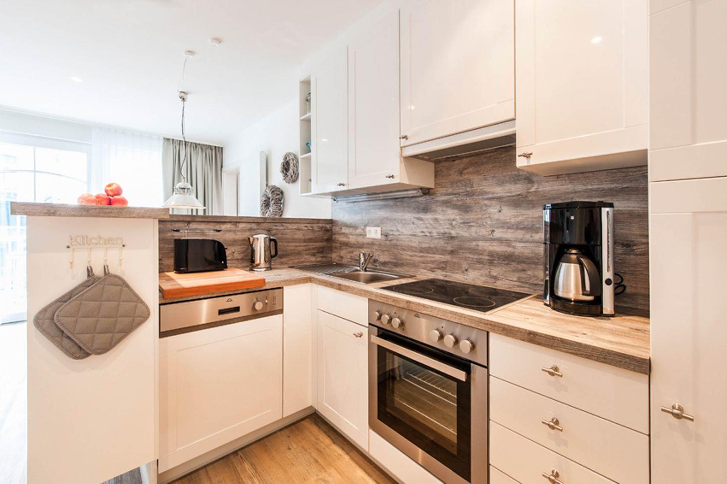 - Küche: Ceranfeld, Backofen, Mikrowelle, Geschirrspülmaschine, Toaster, Wasserkocher, Kaffeemaschine
