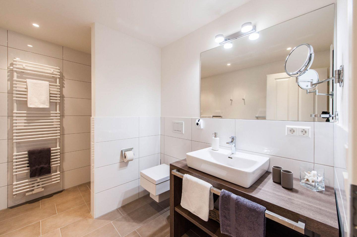 - Bad: Walk-in-Dusche, Handtuchwärmer, Föhn, Kosmetikspiegel, Waschtisch