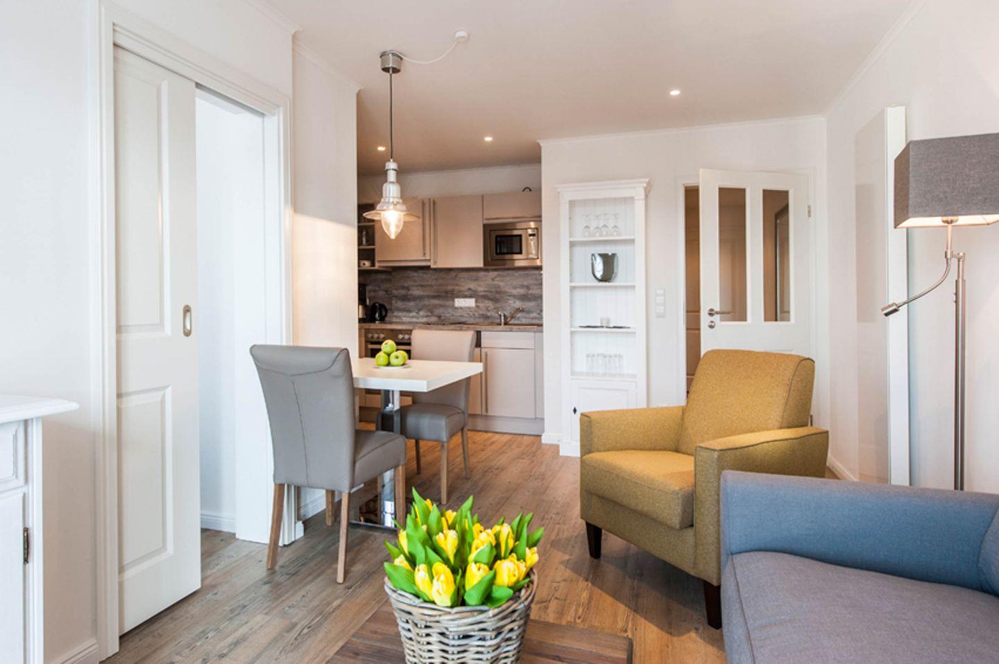 Das 50 m² Apartment ist geeignet für 2 Personen und befindet sich in dem Haus "Weisse Villa" direkt am Büsumer Hafen.