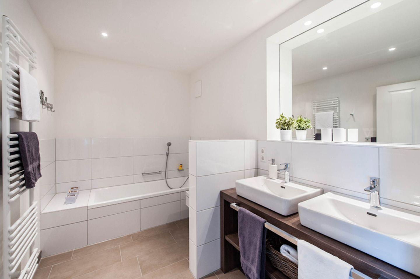- 1. Bad: Walk-in-Dusche, Handtuchwärmer, Föhn, Kosmetikspiegel, Doppelwaschtisch