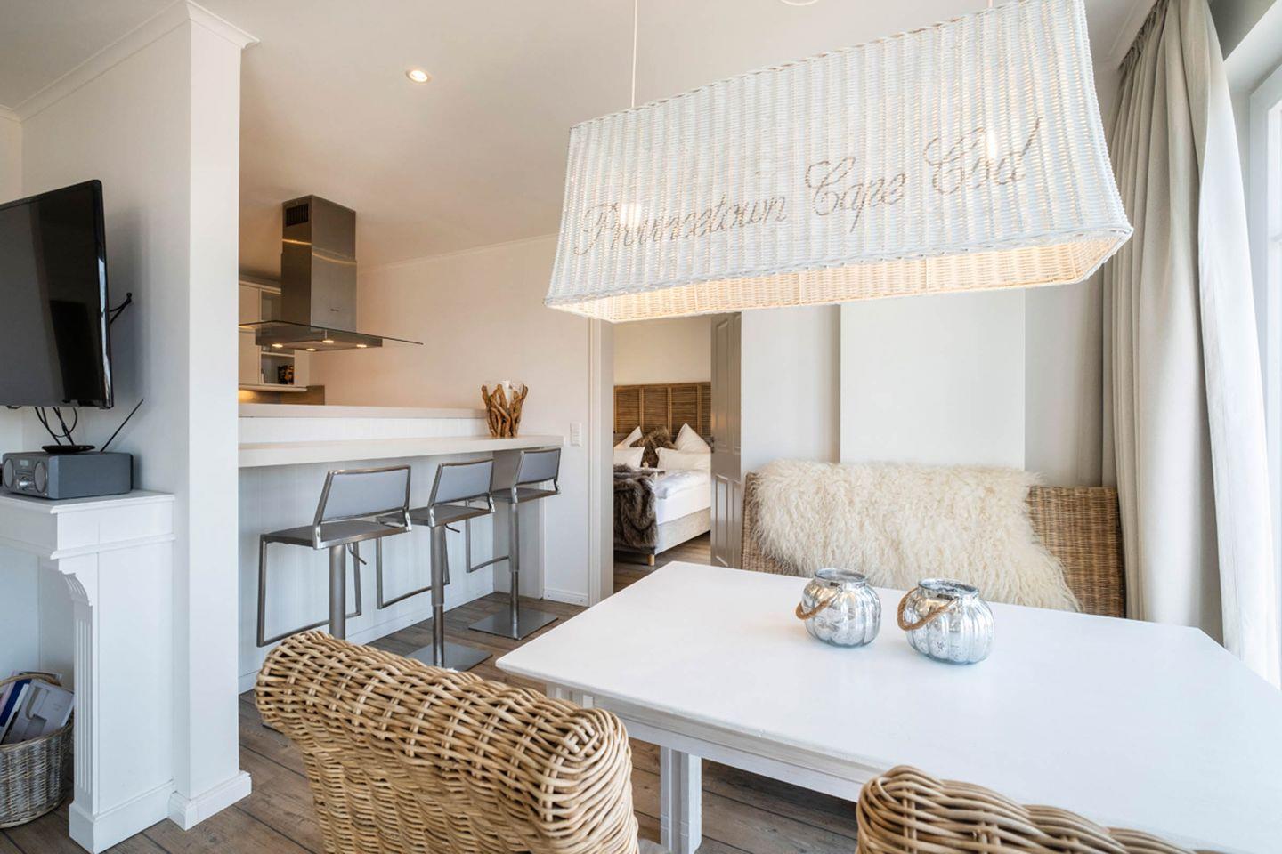 Das 90 m² Apartment ist geeignet für bis zu 4 Personen und befindet sich in dem Haus "Weisse Villa" direkt am Büsumer Hafen.