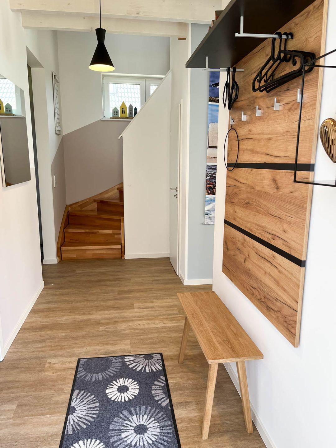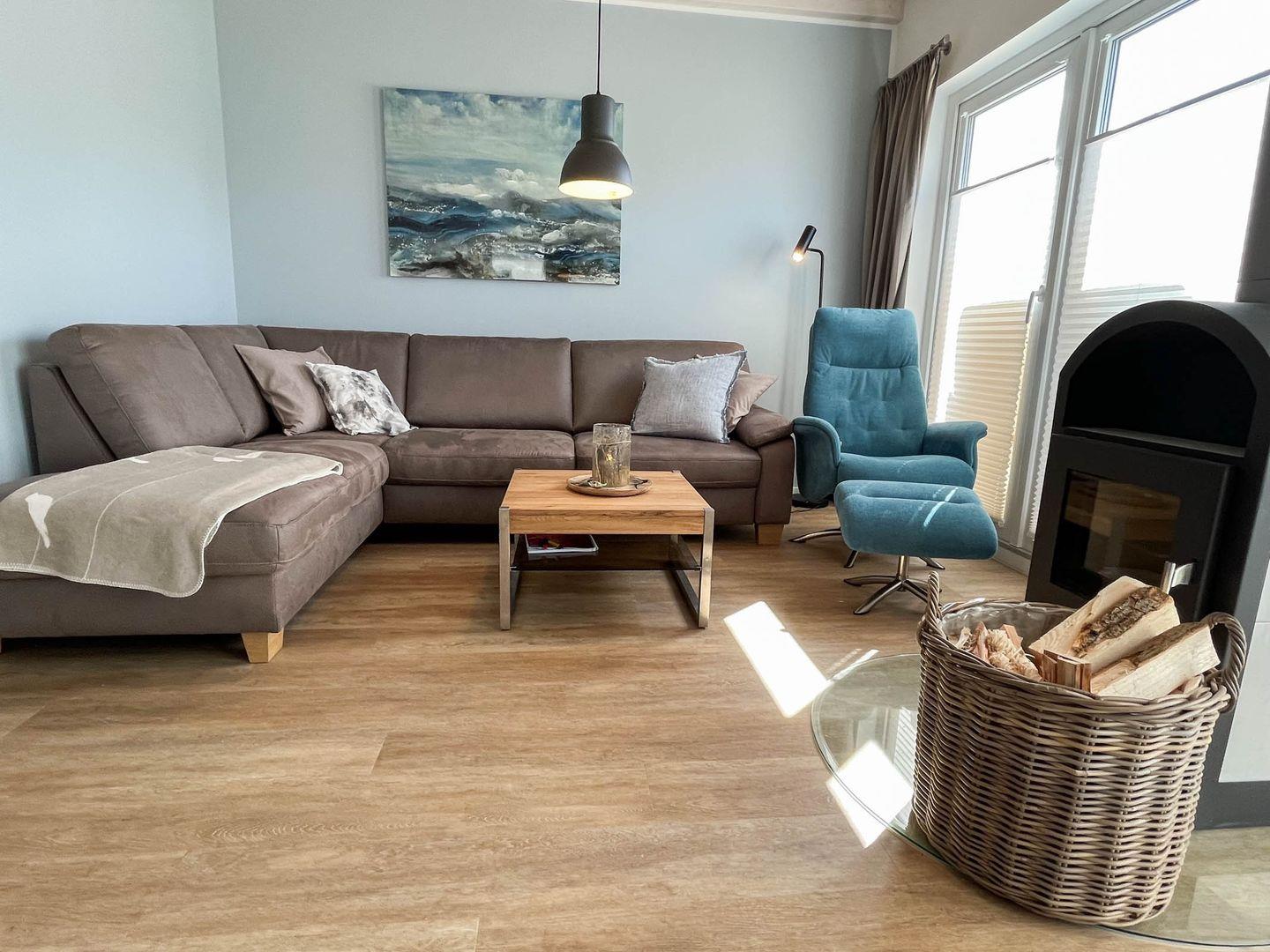 Das lichtdurchflutete Haus mit hohen Räumen und weiß lasierter Holzbalkendecke im Erdgeschoss bietet mit ca. 79 m² Wohnfläche reichlich Platz für vier Gäste. Das Wohnzimmer verfügt über eine bequeme Sofalandschaft mit einem Sessel, der Essbereich über einen großen Esstisch sowie über ein Sideboard mit Smart-TV und Stereo-Anlage. Zur Unterhaltung stehen Bücher, CDs und eine Spielesammlung zur Verfügung. Das Haus verfügt über einen Glasfaseranschluss, der kostenfreies WLAN bietet. Vom Wohnzimmer aus gelangt man auf die großzügige nach Süden ausgerichtete Terrasse. Gartenmöbel und ein Strandkorb stehen zur Verfügung.
