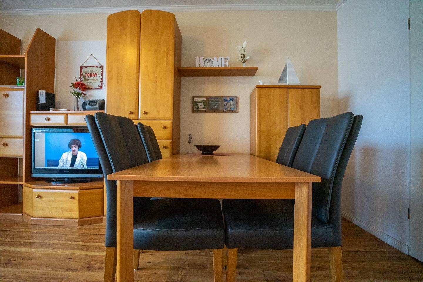 Bis zu vier Personen finden hier Platz, weshalb die Wohnung optimal für kleinere Familien oder Paare ist. Zwei Schlafmöglichkeiten sind im Schlafzimmer mit dem Doppelbett, zusätzlich können noch zwei Personen im Wohnzimmer auf der Schlafcouch schlafen. Im Wohnzimmer befindet sich außerdem noch ein SAT-TV.