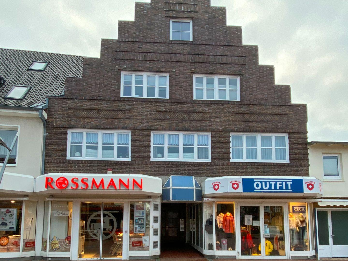 Die Wohnung befindet sich in dem 1929 erbauten Kaufmannshaus mitten im Zentrum von Büsum.