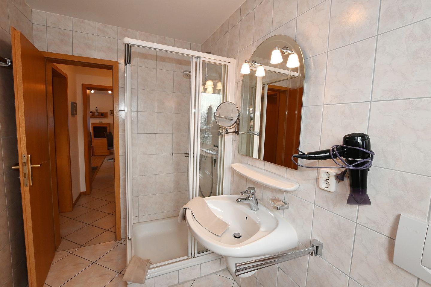 Die helle, geräumige Wohnung zeichnet sich durch ihre liebevolle und behagliche Einrichtung aus. Von dem Flur aus gelangt man zum sonnigen Wohnzimmer mit Zugang zum großen Balkon. Das Badezimmer ist mit Glasdusche und WC ausgestattet.