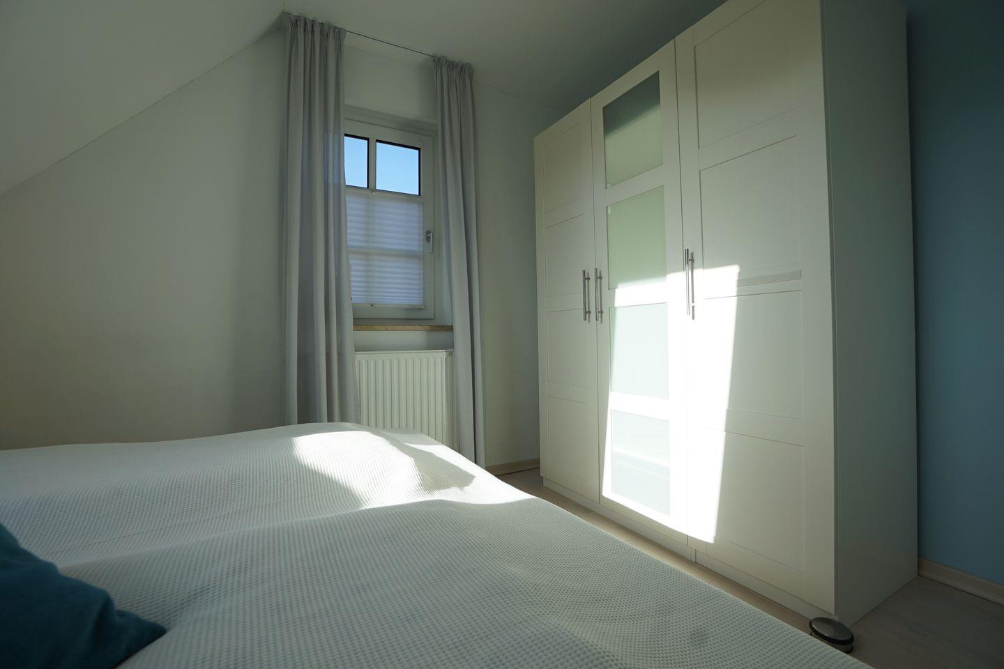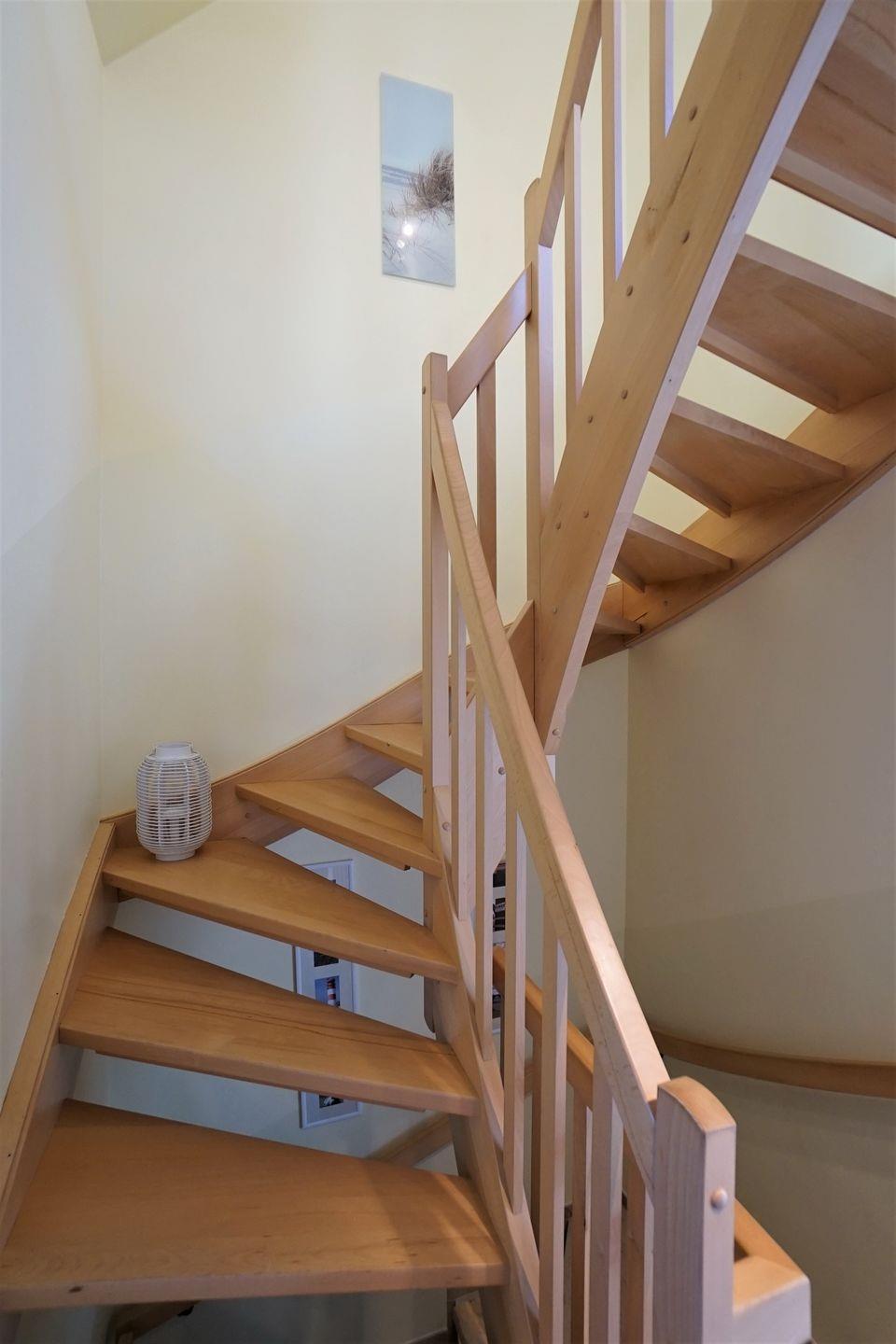 Eine weitere Terrasse mit Strandkorb befindet sich geschützt vor dem Haus. Im Wohnbereich und in den Schlafzimmern ist gemütlicher Parkettfußboden verlegt.