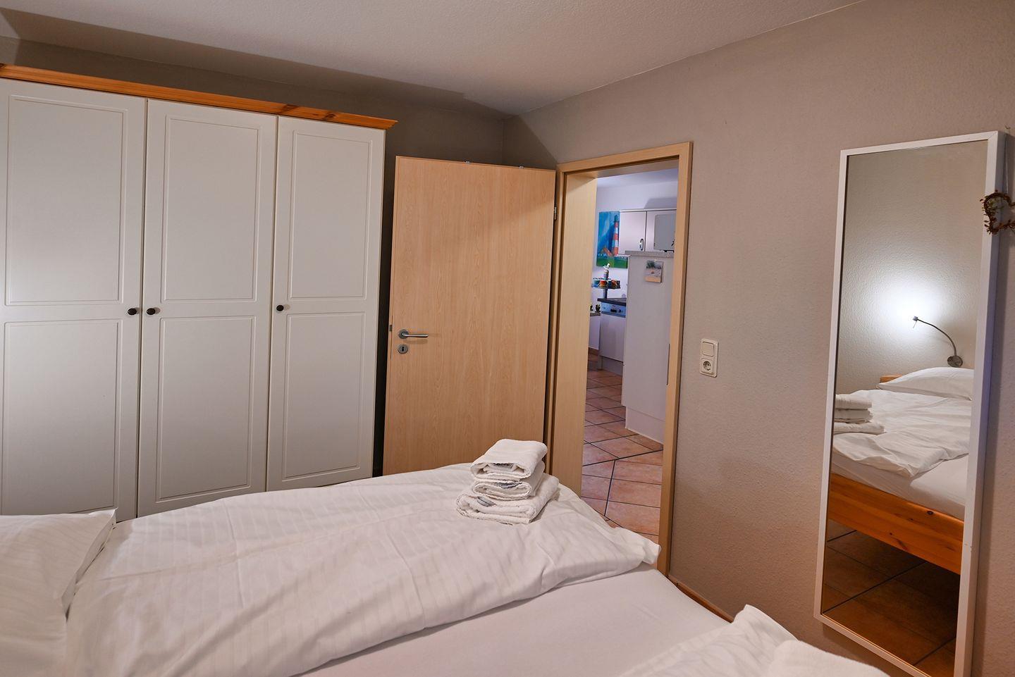 Die Betten im Schlafzimmer sind etwas höher gelegen und damit optimal für ältere Gäste oder z.B. auch Gehbehinderte.