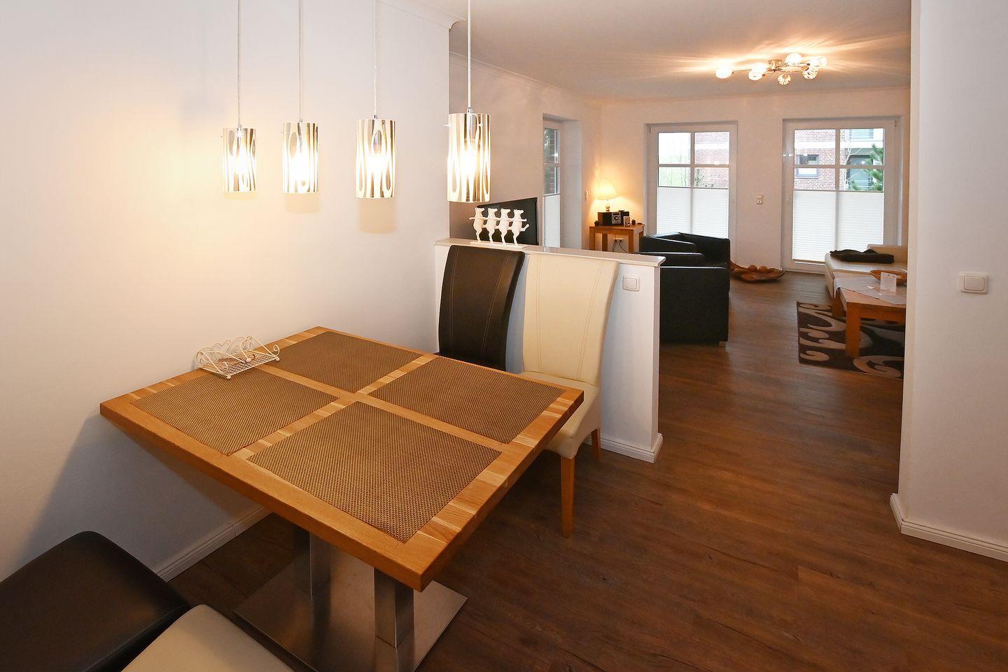 Hier ist eine vollausgestattete Küchenzeile vorhanden inklusive einem netten Essbereich.