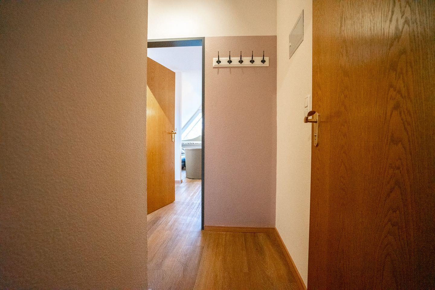 Die Wohnung Nordseetraum 5 befindet sich im OG und verfügt über einen Balkon mit Balkonmöbeln, ein Schlafzimmer, eine Küchenzeile, ein Duschbad und einem Wohn-/Schlafraum mit einer hochwertigen Doppelschlafcouch.