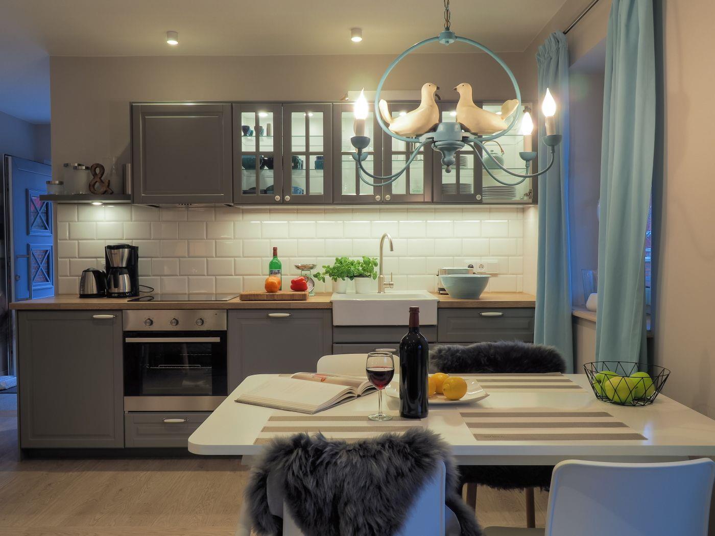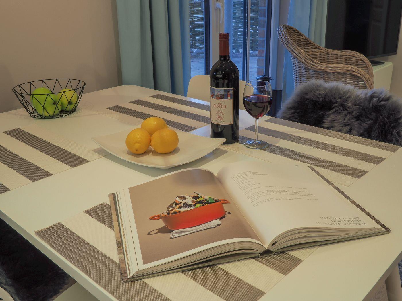 Der komfortable Wohn- und Essbereich mit offener Küchenzeile lässt keine Wünsche offen, die Küche ist mit hochwertigem Interieur ausgestattet.
