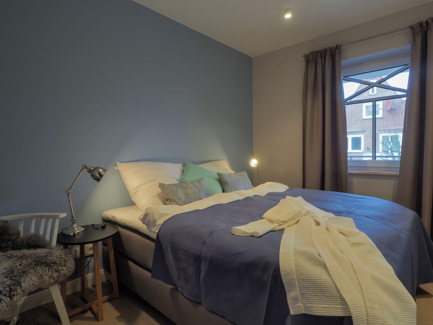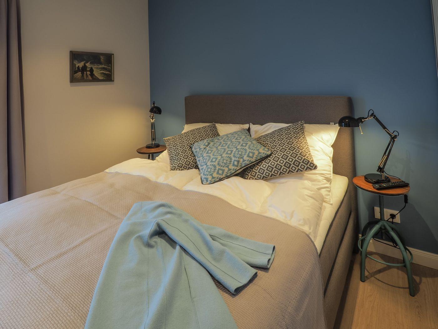 Vier Personen genießen höchsten Komfort in den beiden Schlafräumen (Hinweis: Auf den Betten finden Sie durchgehende Topper, ein großes Bettlaken wird benötigt).