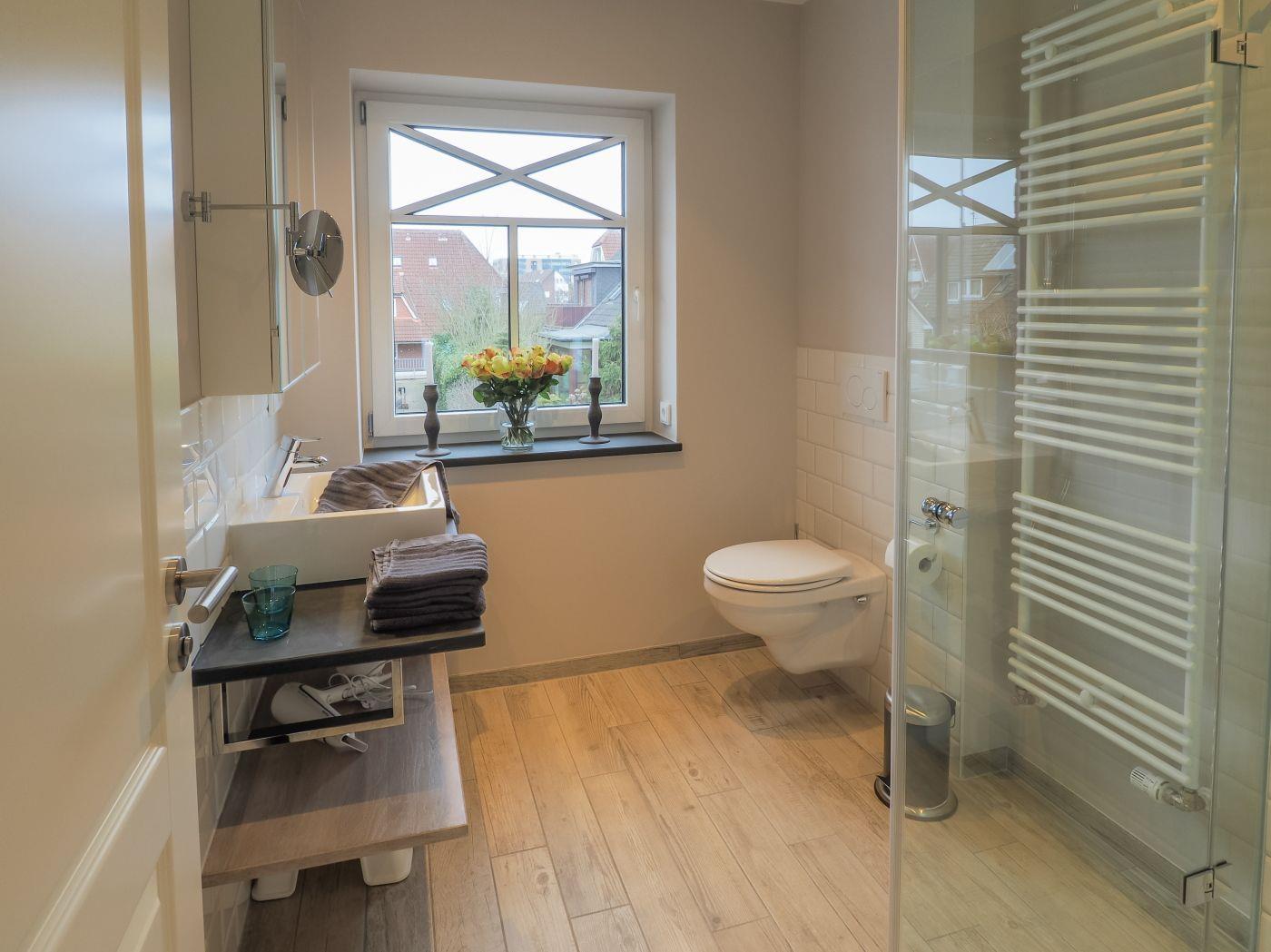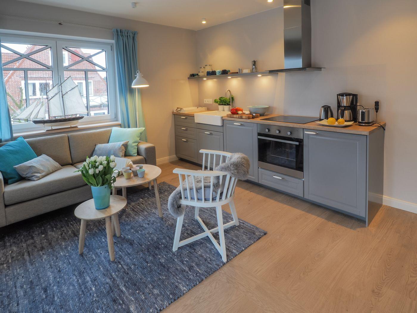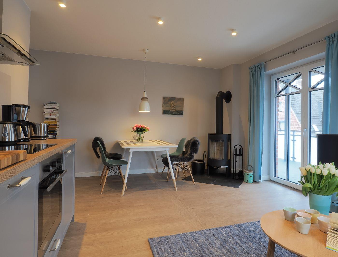 Die Küchenzeile ist mit hochwertigem Kücheninterieur ausgestattet. Ein großzügiges Duschbad mit WC und der gemeinschaftliche Saunabereich im Erdgeschoss machen das Urlaubspaket komplett.