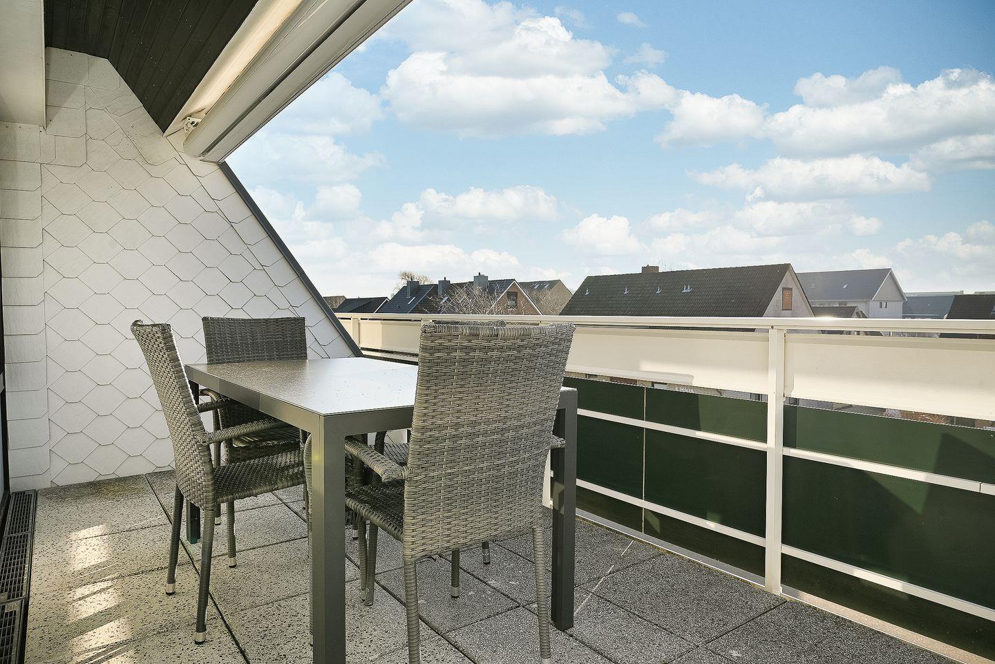 Ein Highlight der Ferienwohnung sind die beiden Balkone. Einer davon mit Markise -ideal, um die frische Nordseeluft und entspannte Stunden im Freien zu genießen. Für Familien mit Kindern stehen ein Bollerwagen, Spiele zur Verfügung.