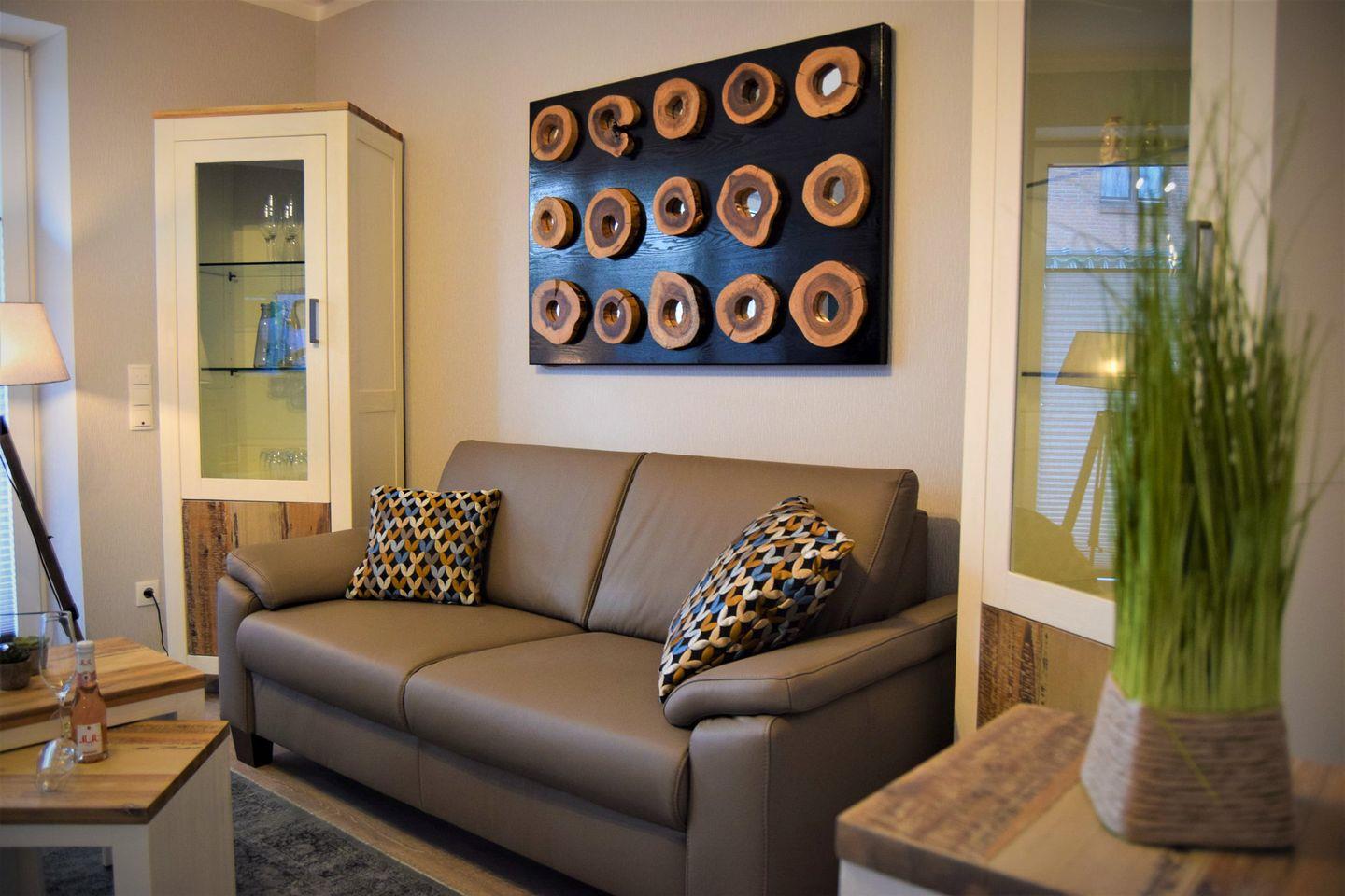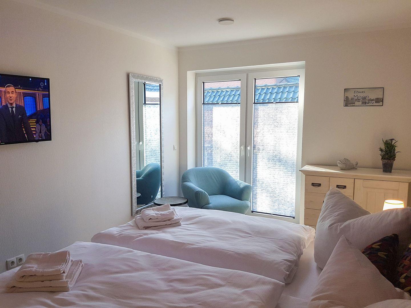 Es erwarten Sie Designer-Möbel, Boxspringbetten der Marke Schlaraffia mit Topper, 3-fach verglaste Fenster mit elektr. Außenjalousien, Fußbodenheizung und Lüftungsanlage, W-Lan und Smart-TV. Im Wohnzimmer, sowie im Schlafzimmer befindet sich jeweils ein Smart-TV .
