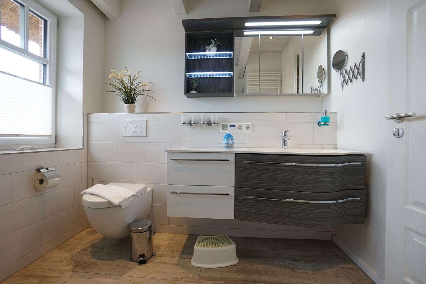 Die Reetdachhaushälfte Henny bietet Ihnen auf drei Etagen höchsten Komfort. Im