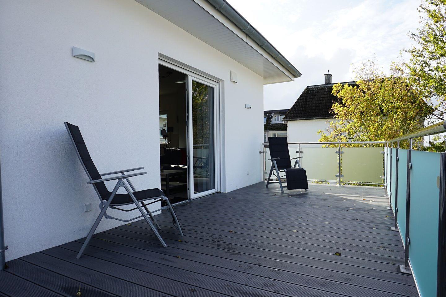 Besonders schön: Vom Wohnzimmer sowie von einem der Schlafzimmer aus haben Sie jeweils direkten Zugang zur herrlichen Dachterrasse. Genießen Sie hier die wohltuende Nachmittags- und Abendsonne!