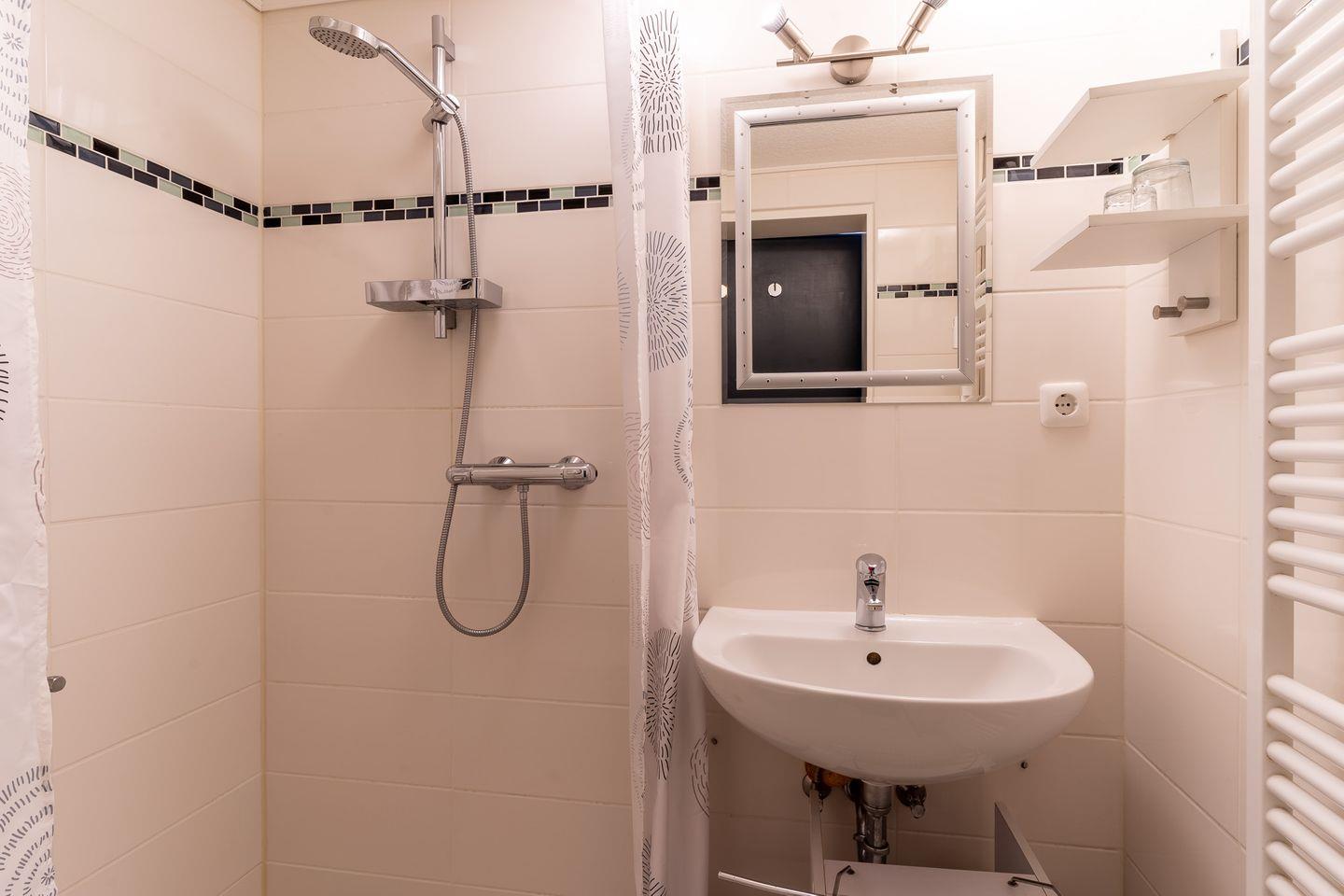 Die ca 30 m2 große 1-Raum-Wohnung befindet sich im Erdgeschoß eines Mehrparteien-Hauses. Über die Terrasse gelangen Sie in den Wohn-Küchen und Schlafbereich. Das Schlafsofa hat eine Größe von 1,80 x 2,00 Meter.Das moderne Duschbad bietet ausreichend Platz für Ihre Utensilien.
