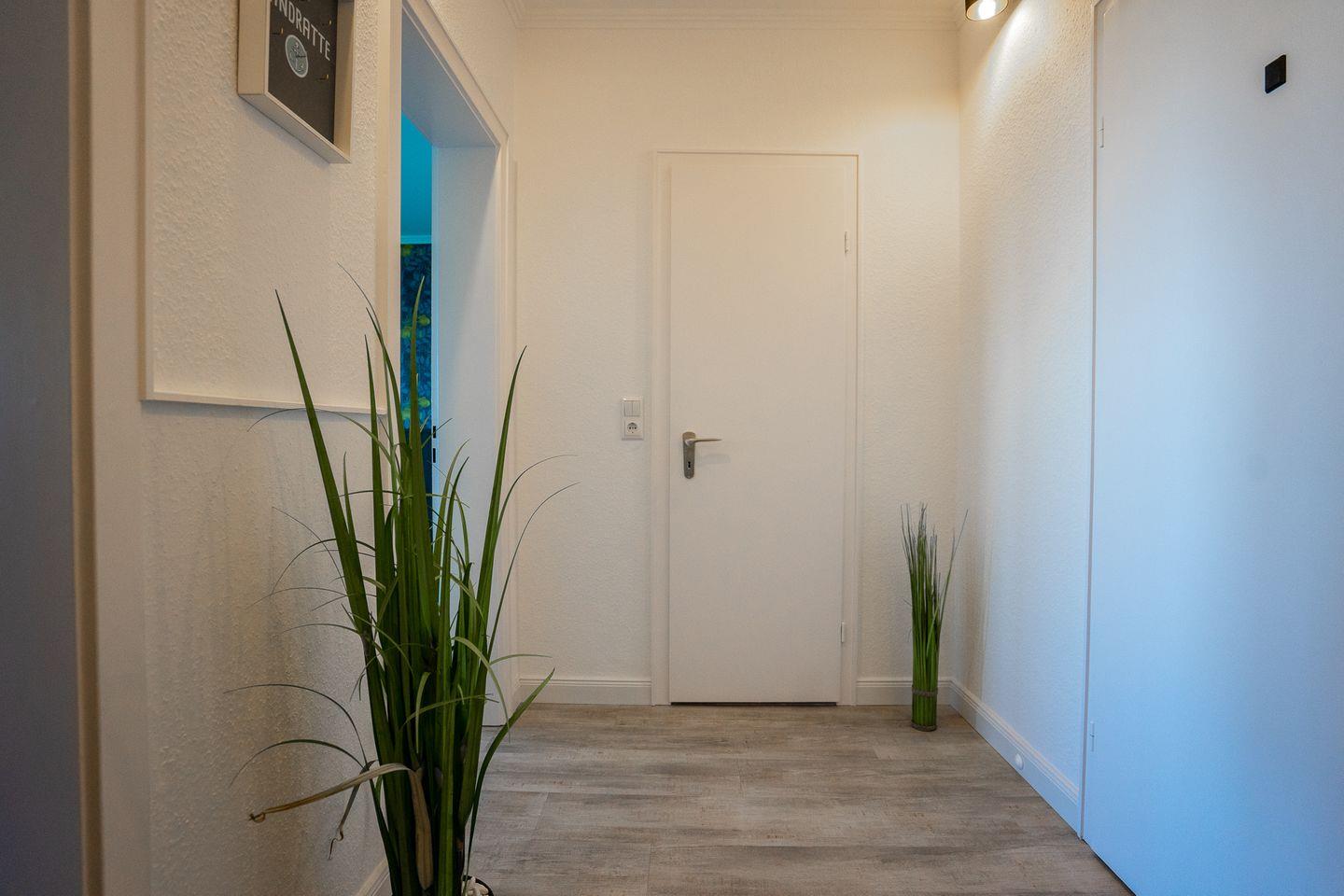 Hier wurde auf jedes kleinste Detail zum Wohlfühlen geachtet. Wenn Sie die Wohnung betreten, stehen Sie direkt im großzügigen Flur.