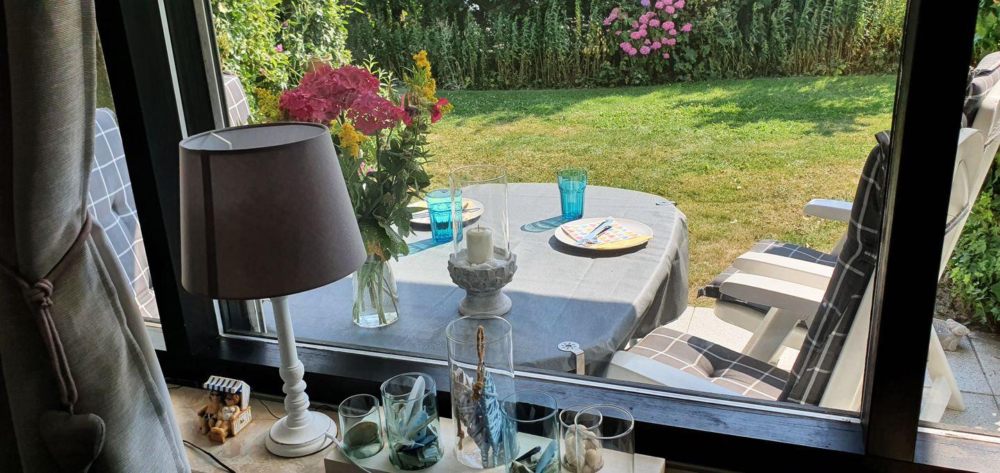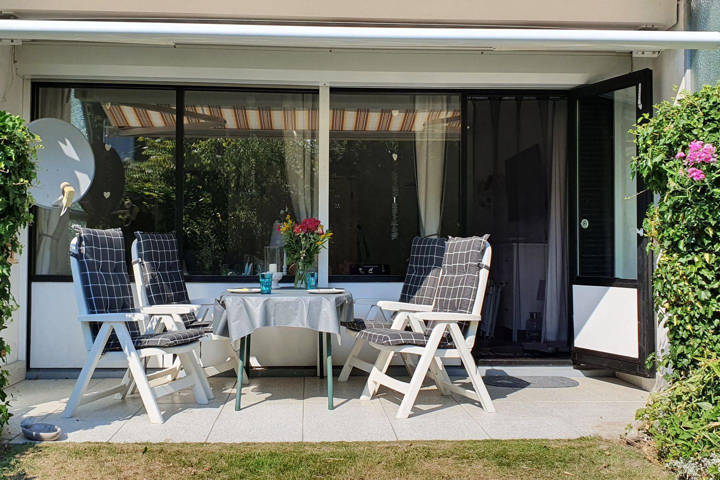 Die Süd- West Terrasse der Wohnung liegt rückwärtig am Haus, so dass Sie einen Blick ins Grüne haben und dort die Nordseeluft in Ruhe genießen können.