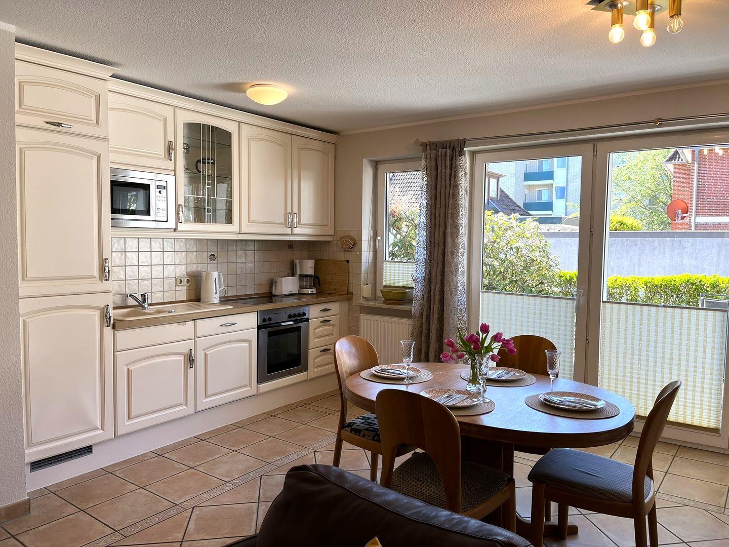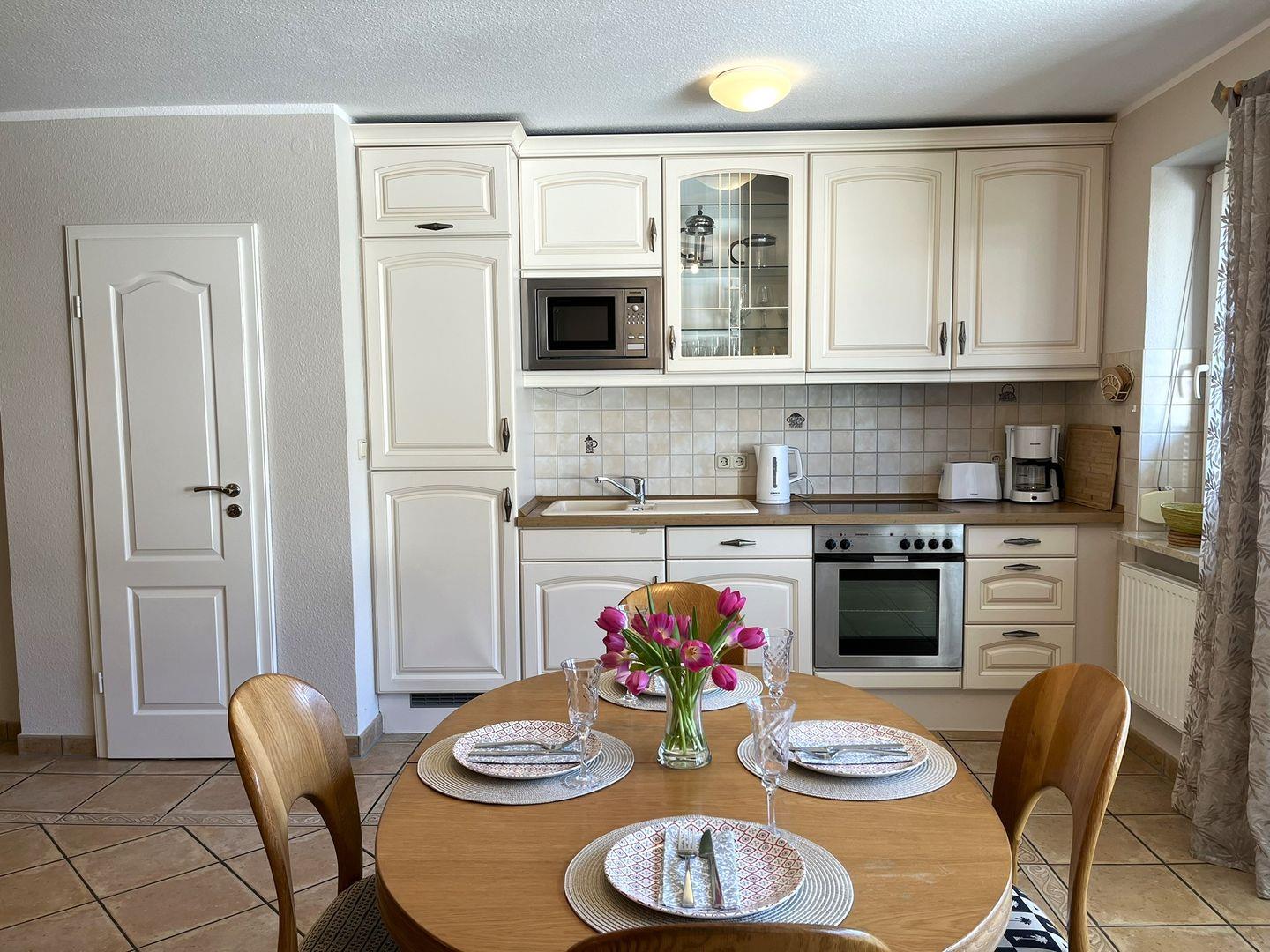 In der komplett ausgestatteten Küchenzeile im Wohnraum findet man alles was man braucht, um sich selber zu verpflegen.