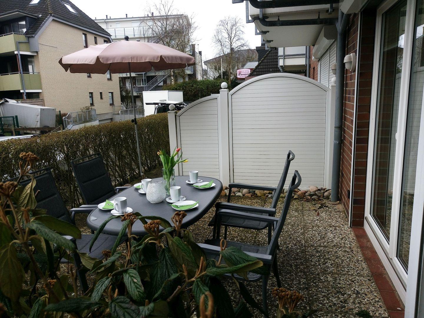 Auf der, trotz Zentrumsnähe, ruhigen Terrasse können Sie herrliche Stunden verleben und so richtig abschalten.