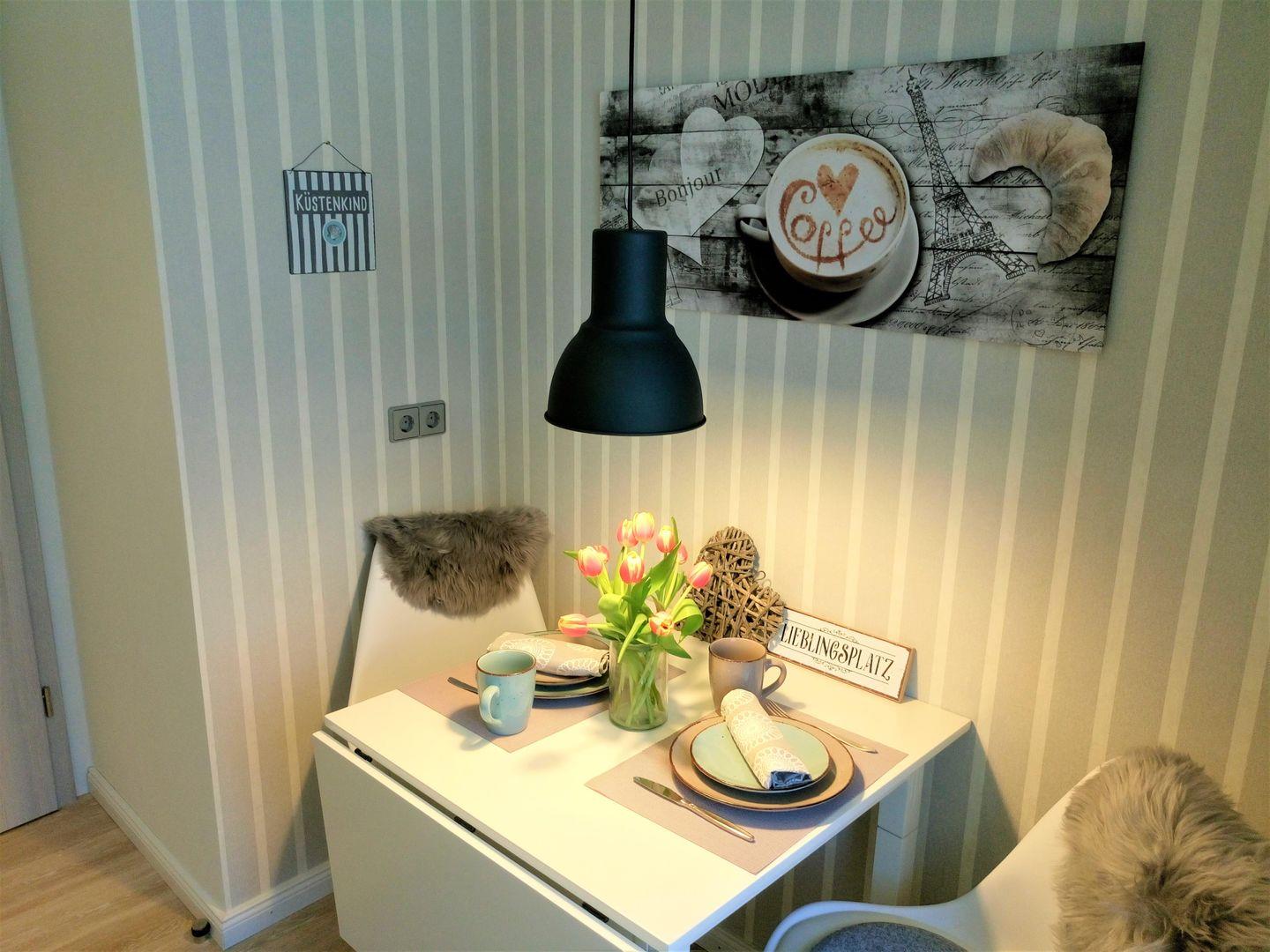 Moin, Moin und herzlich willkommen in dieser schicken, modernen Ferienwohnung im Zentrum von Büsum, die Platz bietet für 2 Personen und einen kleinen Hund. Auch ein Babyreisebett für den Nachwuchs hat hier Platz.