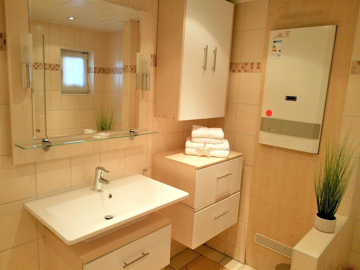 Noch ein zusätzliches Gäste WC mit Waschbecken und Waschmaschine befindet sich ebenfalls hier oben.