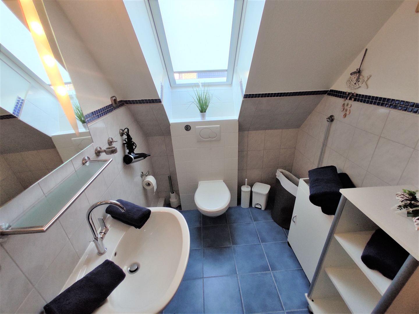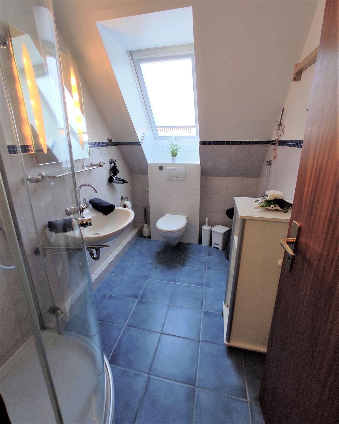 Das Tageslichtbad mit Dusche und WC rundet diese wirklich schöne Wohnung ab. Hier werden Sie ihren Urlaub sicher in vollen Zügen genießen.