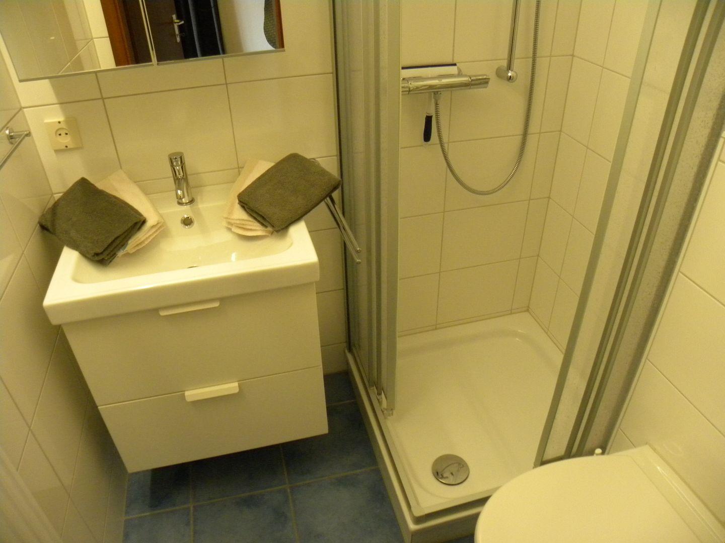 Ein Duschbad mit Spiegelschrank komplettiert die Wohnung.