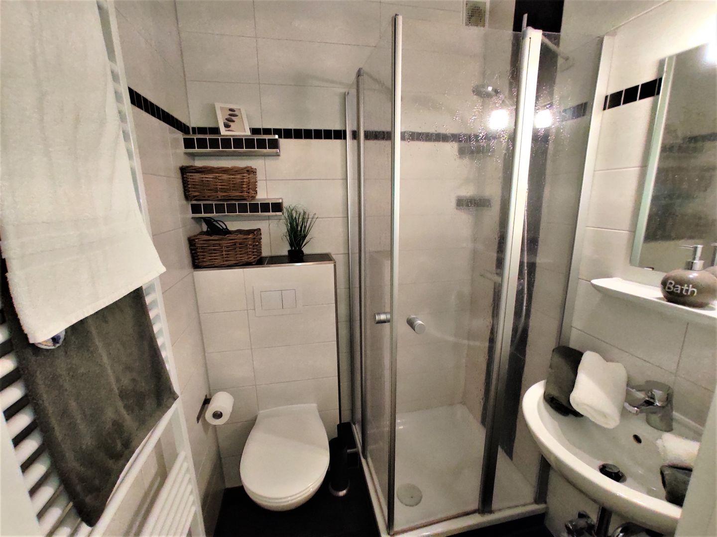 Für einen guten Start in den Tag steht ein Badezimmer mit Dusche zur Verfügung.
