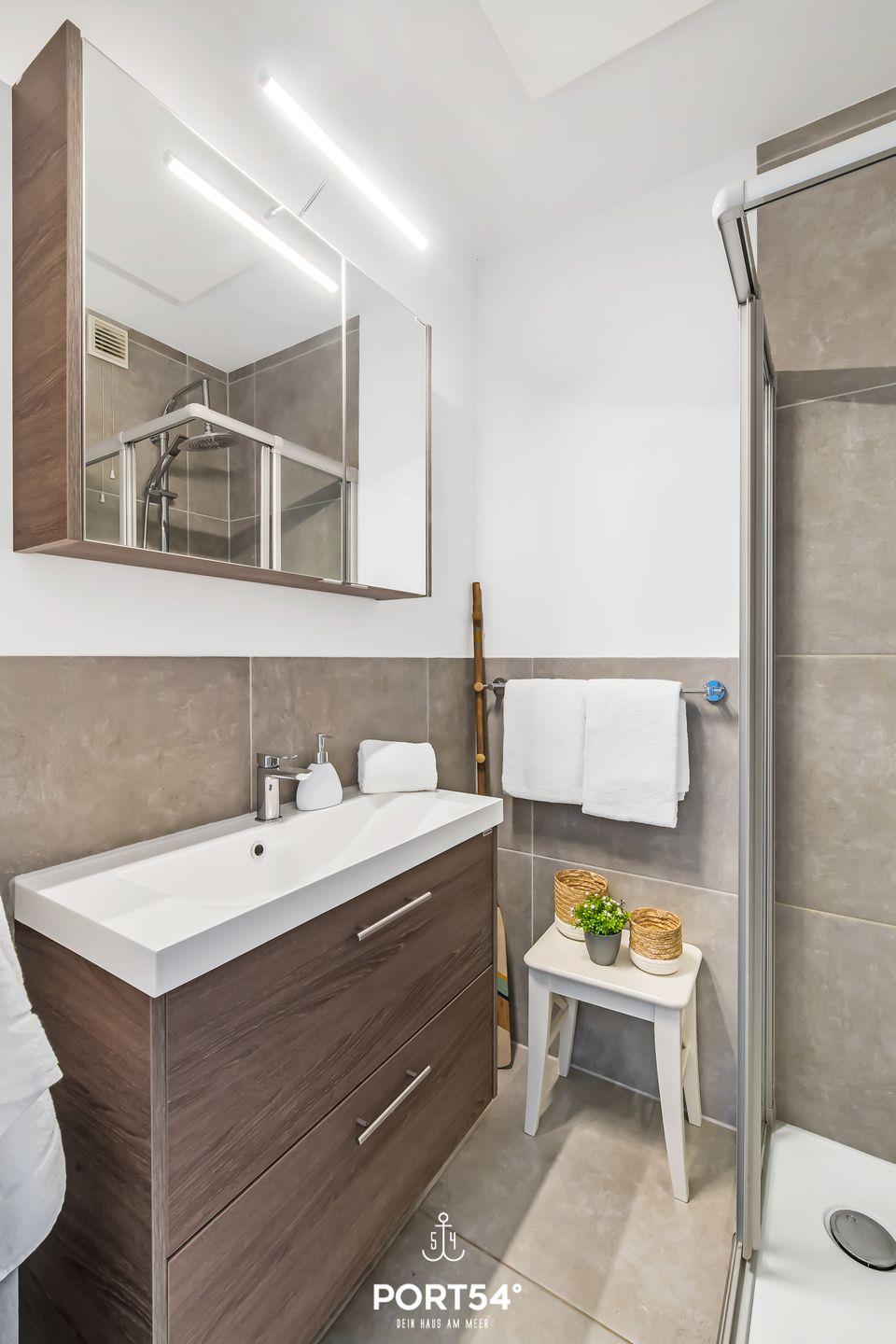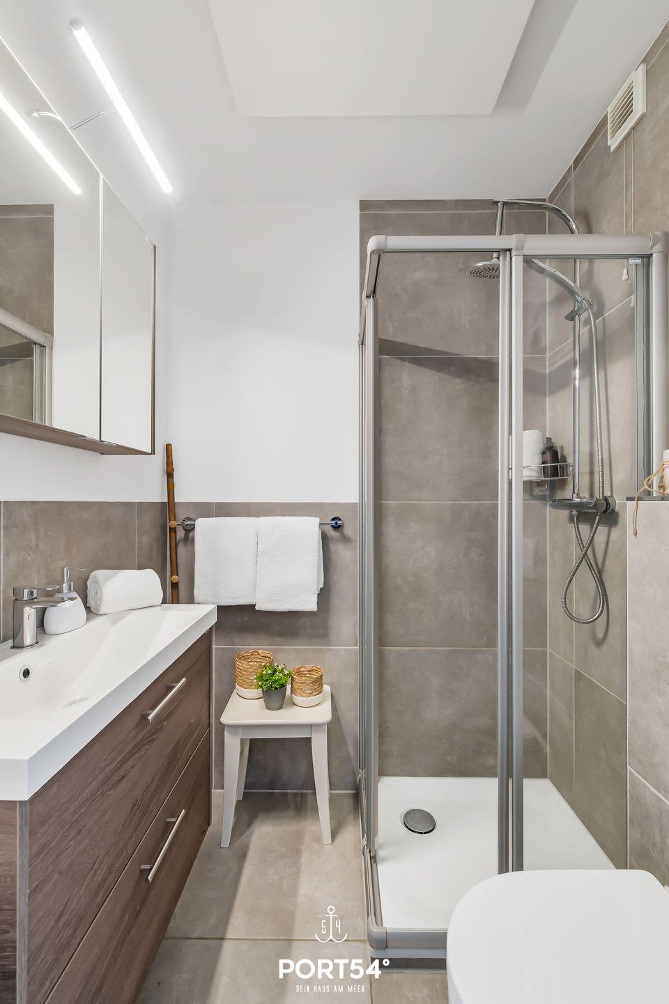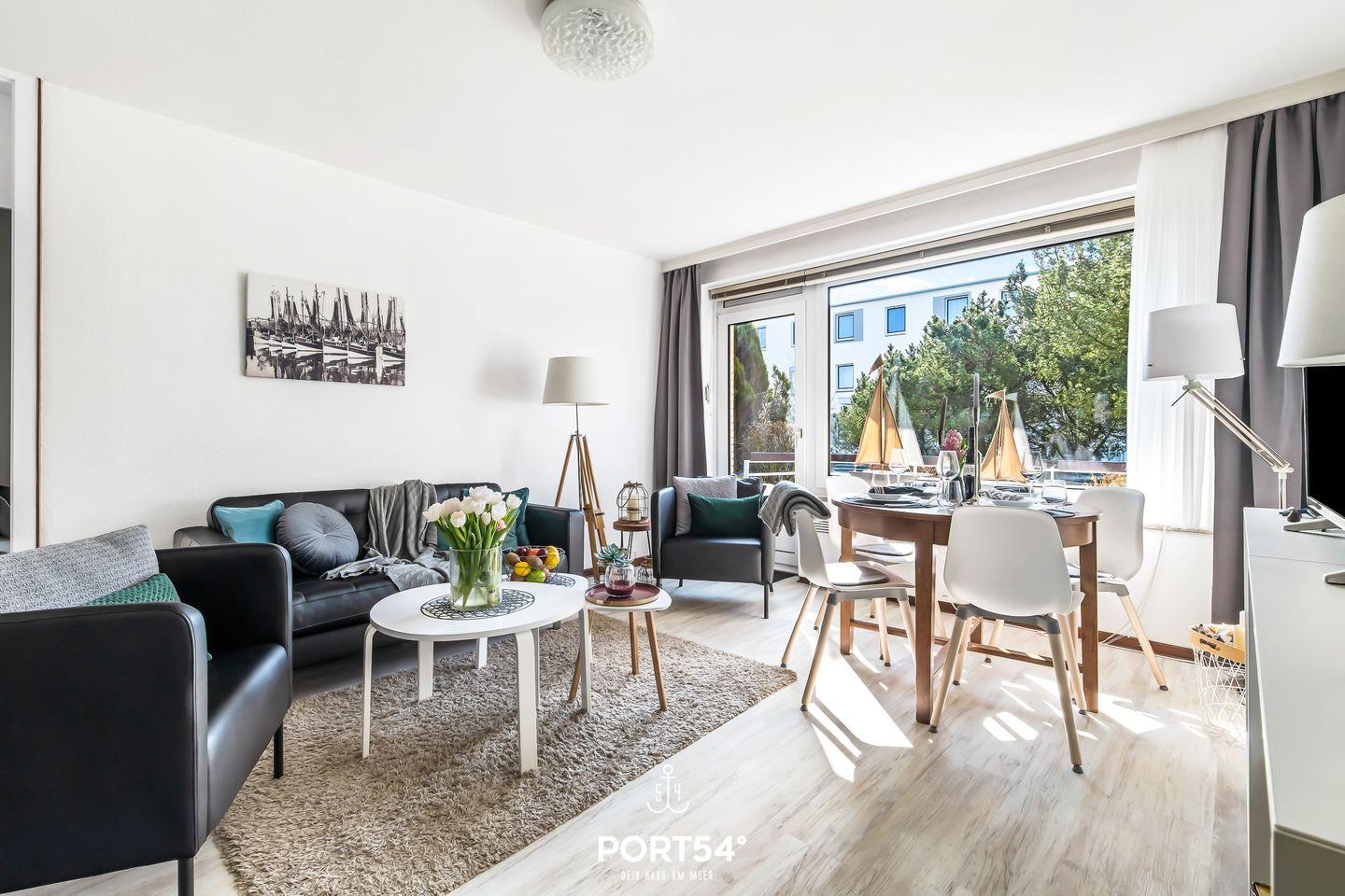 In unmittelbarer, fußläufig erreichbarer Nähe zur Familienlagune Perlebucht ist die Ferienwohnung "Seaside 111" die perfekte Wohnung im Hochparterre für einen Nordseeurlaub in Büsum. Der gemütliche Wohnbereich mit Zugang zum süd-westlich ausgerichtetem, möblierten Balkon bietet einen Rückzugsort für entspannte Abende. Zwei Schlafzimmer, eines mit zwei Einzelbetten (je 90x200cm) und das andere mit einem großen Doppelbett (zwei 90x200cm Matratzen), laden zu erholsamen Nächten nach langen Strandtagen ein. In der gut ausgestatteten Küche mit Durchreiche, Tassimo- und Filterkaffeemaschine, zwei Herdplatten und Kombi-Backofen mit integrierter Mikrowelle und Grillfunktion ist die eigenständige Verpflegung während des Urlaubs kein Problem. Das moderne Badezimmer verfügt über ein WC, Waschbecken und eine Dusche. Für die kleinen Gäste steht Kinderspielzeug zur Benutzung bereit. Auf der Parkfläche vor der Wohnung steht Ihnen ein kostenfreier Parkplatz zur Verfügung. Vor dem Haus befindet sich ein gemeinschaftlich genutzter Schuppen, in welchem zwei Fahrräder zur kostenfreier Nutzung bereit stehen.
