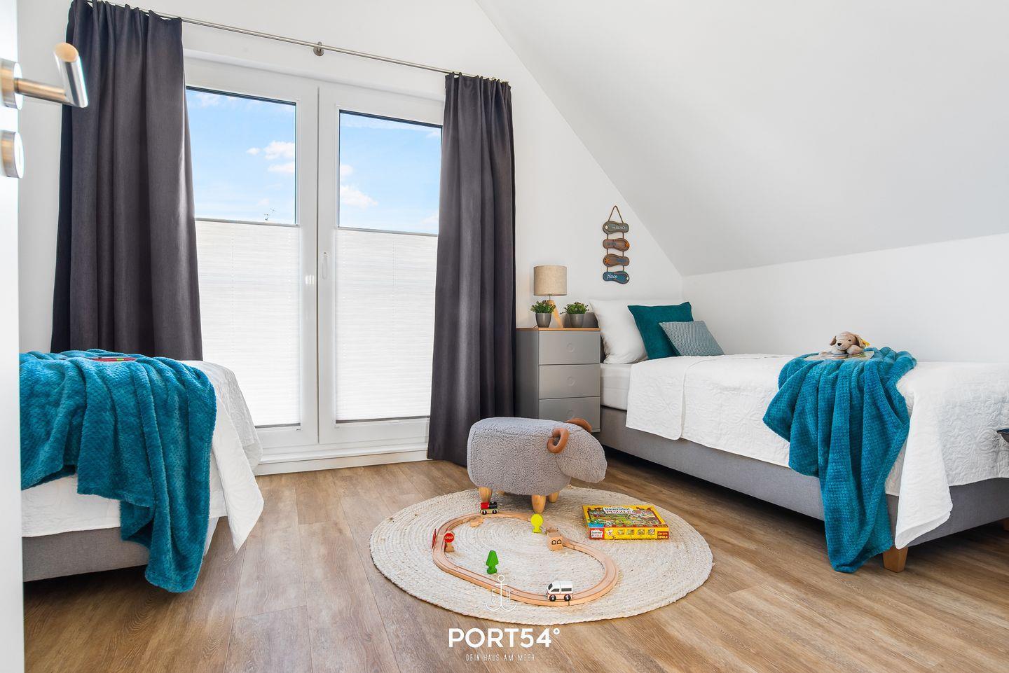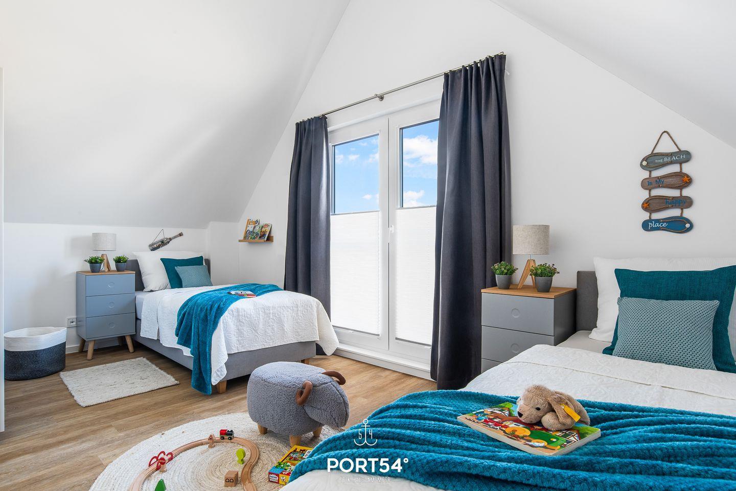 Das zweistöckige, freistehende Haus "Nordic Lodge" bietet auf ca. 88m² Urlaub der Extraklasse. Im EG erwartet Sie ein offener Wohn- und Essbereich mit Zugang zur Terrasse, eine vollausgestattete Küche sowie ein Bad mit ebenerdiger Dusche. 2 Schlafzimmer im OG, wovon eins mit einem Doppelbett & das andere mit zwei Einzelbetten ausgestattet ist. Das im OG gelegene Wannenbad lädt zur Entspannung ein. Auf der Terrasse mit angrenzender Rasenfläche lassen sich sonnige Tage verbringen.