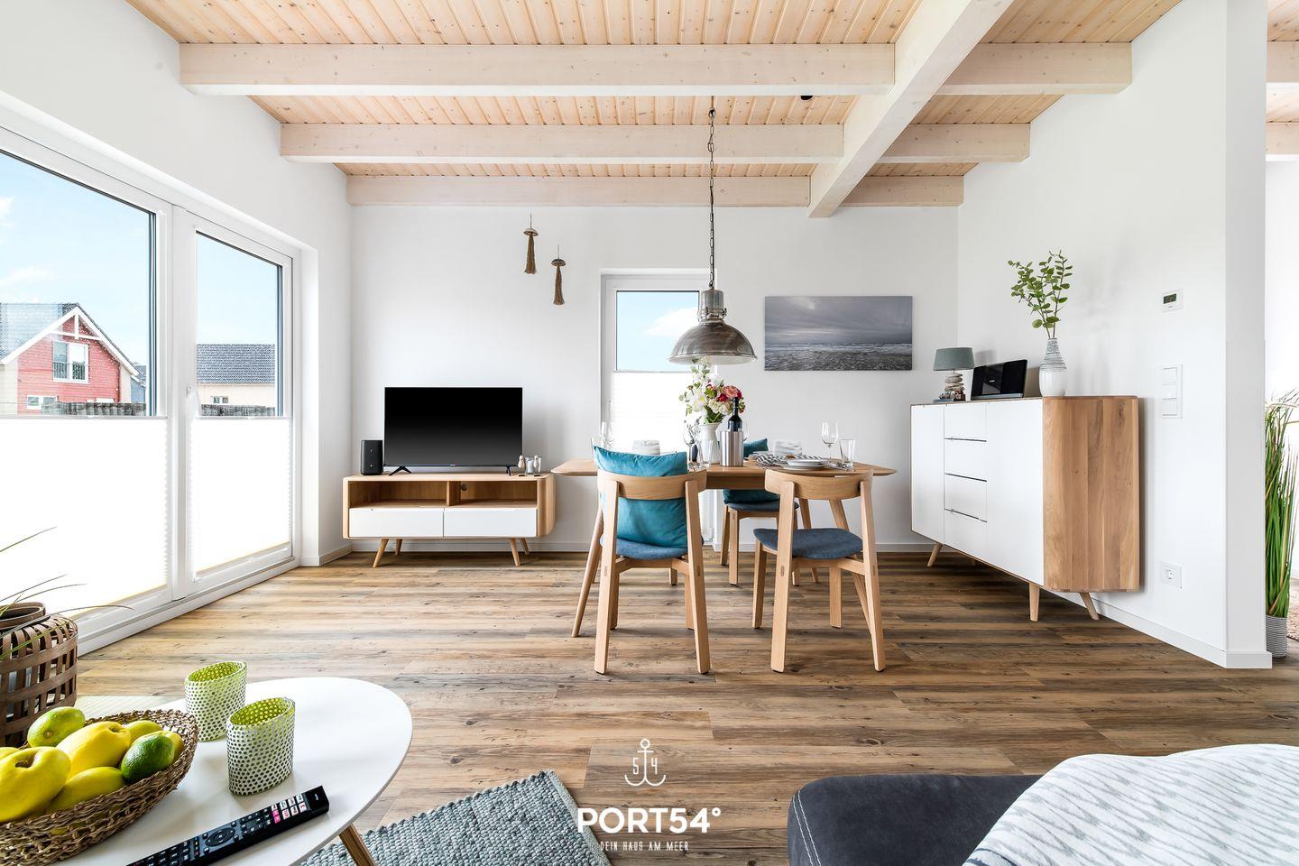 Starten Sie jetzt Ihren Urlaub in der Unterkunft "Haus am See". Das Haus ist geeignet für bis zu vier Personen und verfügt auf zwei Etagen über 88m² Wohnfläche. Diese teilt sich auf in ein geräumiges Wohnzimmer mit Essbereich, separater Küche, zwei Schlafzimmer und zwei Badezimmer. Im offenen Wohn- und Essbereich steht ein großer Esstisch, sowie ein gemütliches Sofa, auf dem Sie einen entspannten Abend vor dem Fernseher genießen können. Magenta TV sorgt für das richtige Unterhaltungsprogramm. Bei kühlerem Wetter bereitet Ihnen ein knisterndes Feuer im Kaminofen wohlige Atmosphäre. Die voll ausgestattete Küche bietet Ihnen eine gute Auswahl, wie zum Beispiel eine Filterkaffeemaschine, Wasserkocher, Toaster und eine Mikrowelle sowie einen Geschirrspüler. So steht einem perfekten Kochabend nichts mehr im Wege. Die