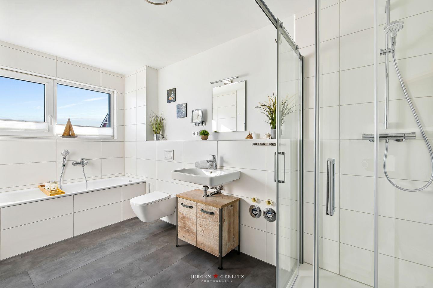 Das Badezimmer mit Badewanne und Dusche verspricht entspannte Momente nach einem langen Strandtag. Auch an die kleinen Gäste ist gedacht: Hochstuhl und Kleinkinderreisebett stehen bereit. Und selbstverständlich ist auch Ihr vierbeiniger Liebling herzlich willkommen.