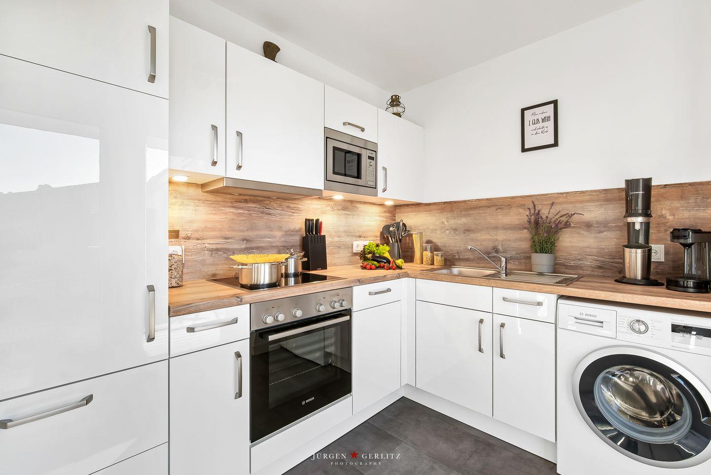 Die moderne, hochwertig ausgestattete Küche lässt keine Wünsche offen und lädt zum gemeinsamen Kochen ein. Ob frischer Kaffee am Morgen, ein schnelles Mittagessen oder ein gemütliches Abendessen – hier finden Sie alles, was Sie brauchen, von Geschirrspüler über Waschmaschine bis hin zu Switch-Kaffeemaschine, Sodastream und weiteren praktischen Extras. Eine Abstellkammer mit Staubsauger sowie Bügeleisen und -brett sorgt für zusätzlichen Komfort.